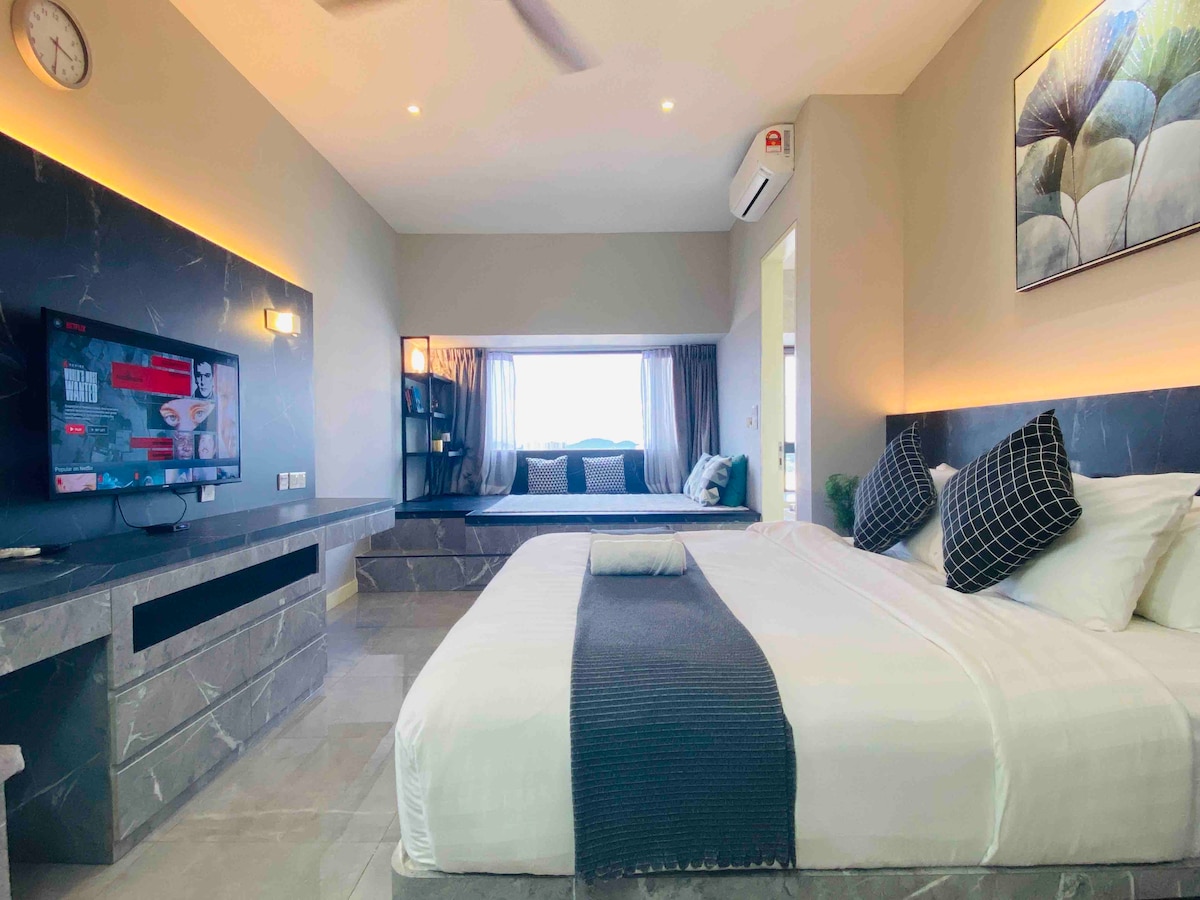 Gestión de vacaciones Max Wealth Suites familiares con vistas al mar abierto de Malaca bien administradas (5 personas) • 2 dormitorios con 2 camas tamaño queen. • Unidad de diseño súper lujoso. • Sofá grande en la sala de estar. • Unidad con vistas al mar • Diseño cómodo. • 869 pies cuadrados. • Acogedora habitación con sala de estar y baño con bañera y mucho más. Situado en el corazón del centro de la ciudad, cerca de las atracciones turísticas y los famosos restaurantes de Melaka. 马六甲开放式海景家庭式套房(5人住) • 高级舒适的设计 • 无敌海景单位 • 869 方尺空间 •客厅以及浴室备有浴缸 坐落在甲市中心,地理位置优越 -旅游景点以及著名美食近