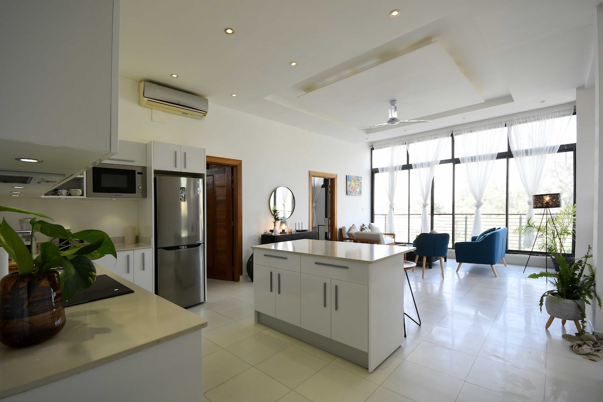 Relájese en este alojamiento tranquilo y elegante, ideal para una estadía cómoda. Totalmente amueblado y equipado, ofrece todo lo necesario para sentirse como en casa. Allí encontrará una cómoda cama, una cocina moderna, aire acondicionado, conexión wifi rápida, TV de pantalla plana y baño privado. Tanto si está de viaje de negocios como de vacaciones, este alojamiento le garantiza una estadía agradable y sin preocupaciones.
