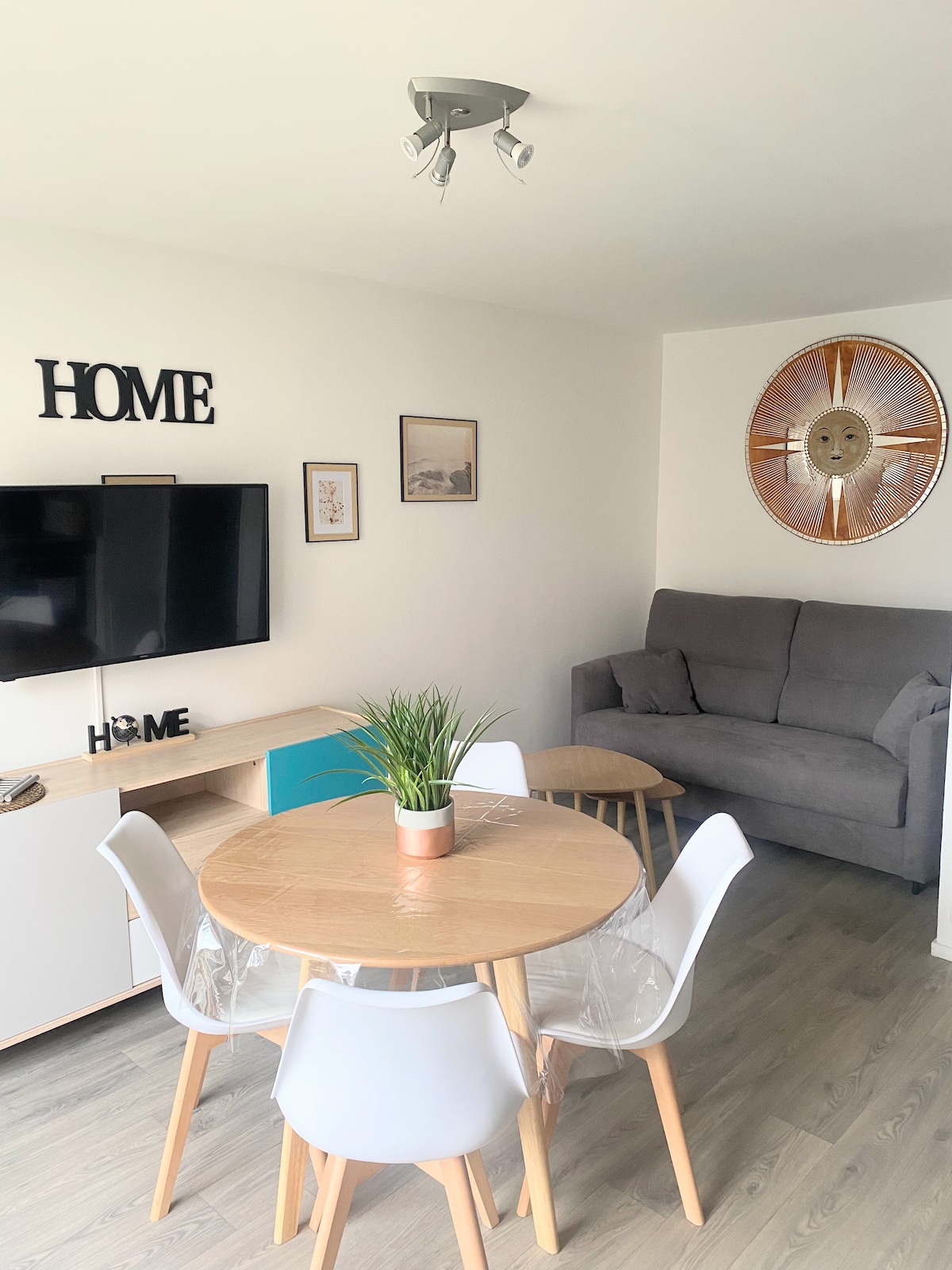 ¿Quiere pasar unas vacaciones junto al mar en Cabourg? Le damos la bienvenida a nuestro luminoso y renovado apartamento con terraza con vista al mar y dos habitaciones con baño privado. Ideal para dos parejas, una familia o amigos. Playa y Talaso a dos pasos, centro accesible en 10 minutos por el paseo Marcel Proust. Clasificado con 3 estrellas ⭐️ en la categoría de alojamientos turísticos amueblados en noviembre de 2023. 47 m² renovados con cuidado y modernidad para una estadía cómoda y relajante.