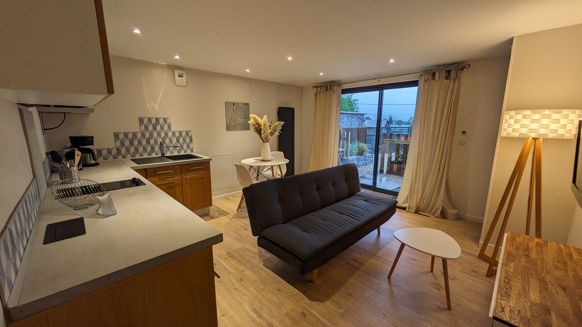🏞️Estudio bien equipado de 30 m2 cerca de Chambéry. 🏆Alojamiento turístico amueblado clasificado 3⭐ 🛏️Cama doble 140x200 Sofá cama auxiliar zona de estar: mesa de centro, puf 🛀Baño separado con bañera + inodoro 🌄El alojamiento está en la planta baja, con una terraza y un jardín cercado ➡️Equipamiento: Refrigerador/congelador Combinado horno microondas Lavavajillas Lavadora Placas de inducción Cafetera Nespresso clásica ✅Se proporcionan sábanas y toallas 🔑Entrada autónoma a través de caja de llaves segura