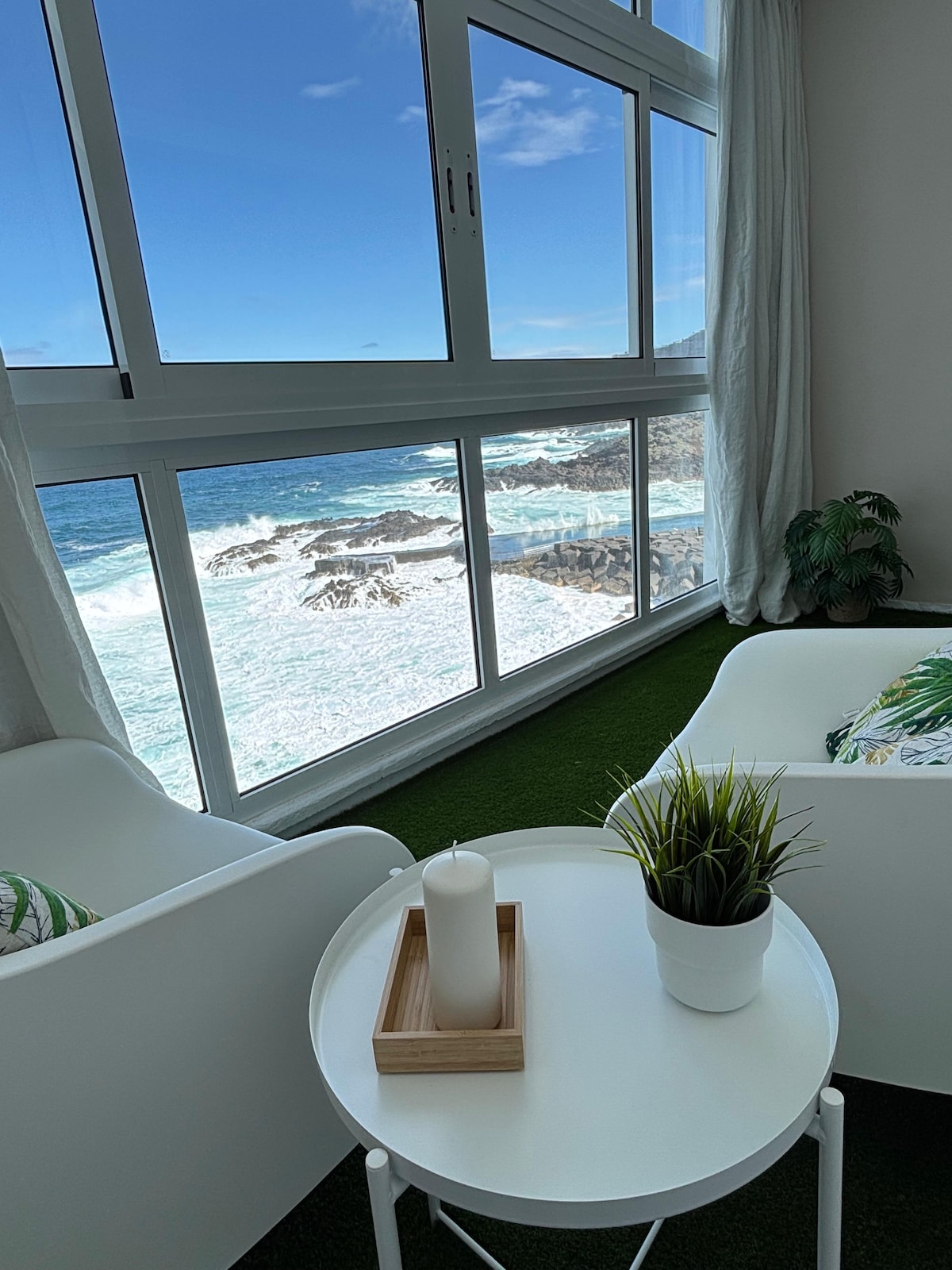Moderno apartamento frente al mar recién reformado y elegantemente decorado con tonos claros y elementos naturales donde se ha cuidado hasta el último detalle para conseguir un acabado acogedor y relajante con todas las comodidades necesarias para disfrutar de unas maravillosas vacaciones con una ubicación idílica, alejado del turismo convencional en una de las playas más bellas y paradisíacas del norte de la isla y junto a una piscina natural de una belleza increíble.
