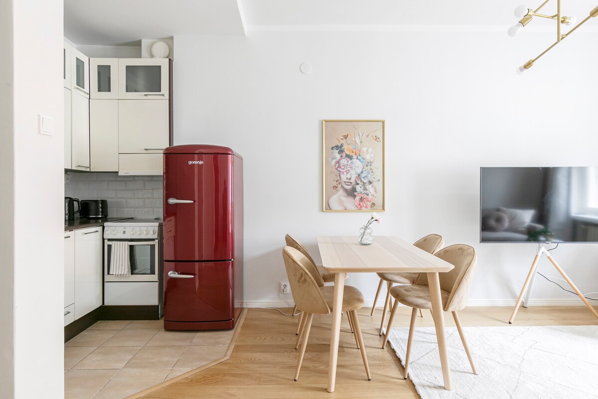 A modern and stylish one-bedroom apartment, located above the Mall of Tripla shopping center. The apartment features a well-equipped kitchen, fast Wi-Fi, laundry facilities, and all the essential amenities to ensure a comfortable stay, whether short or long. Are you visiting Helsinki for business or just a quick getaway? Whatever the reason for your stay, you are warmly welcome to enjoy this apartment—also for longer stays if needed!
