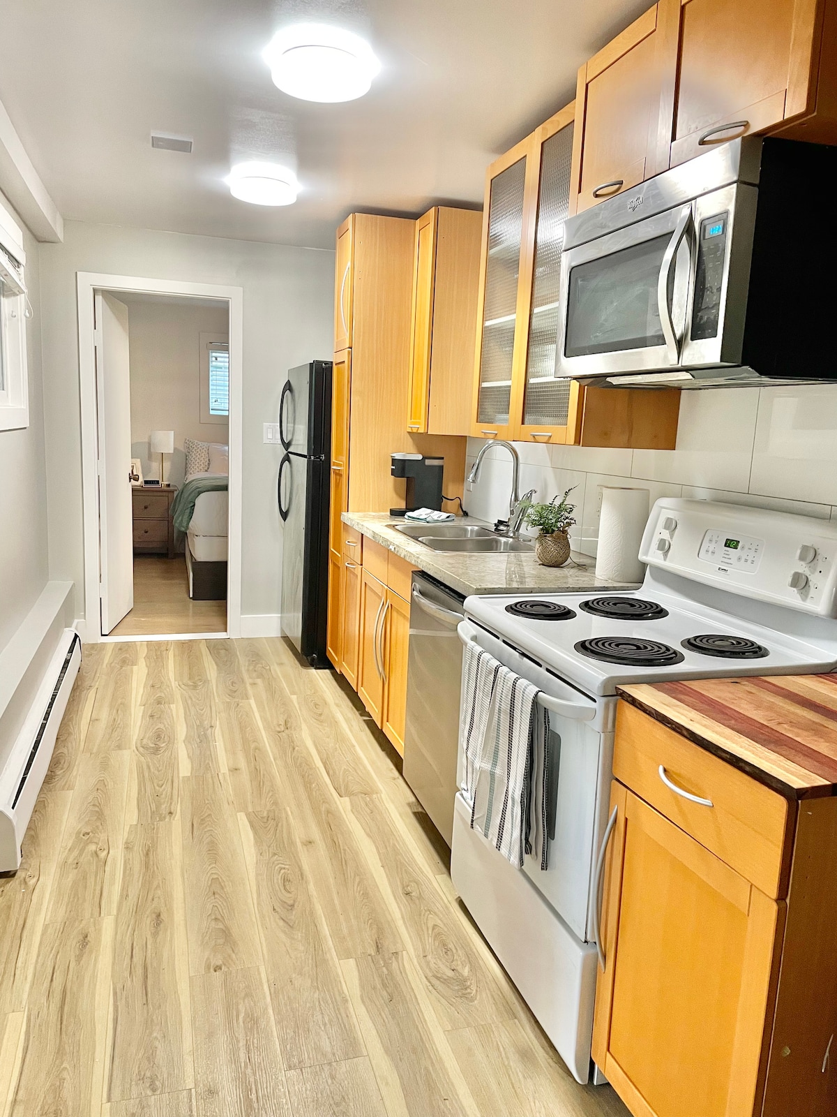 Suite independiente, privada, acogedora y luminosa. Bien abastecido con toallas, mantas, utensilios de cocina, televisión de pantalla plana, bañera de remojo y piso de baño climatizado. Barrio seguro y ecléctico transitable adyacente al parque y parque infantil, familiar, queer y 420 amigable. Estacionamiento gratuito en la calle. Muy cerca del transporte público. La cama doble tiene capacidad para dos personas. También podemos instalar una tercera persona en la cama otomana extraíble. Relájate con una cuarta persona en la silla plegable que se convierte en una tercera cama.