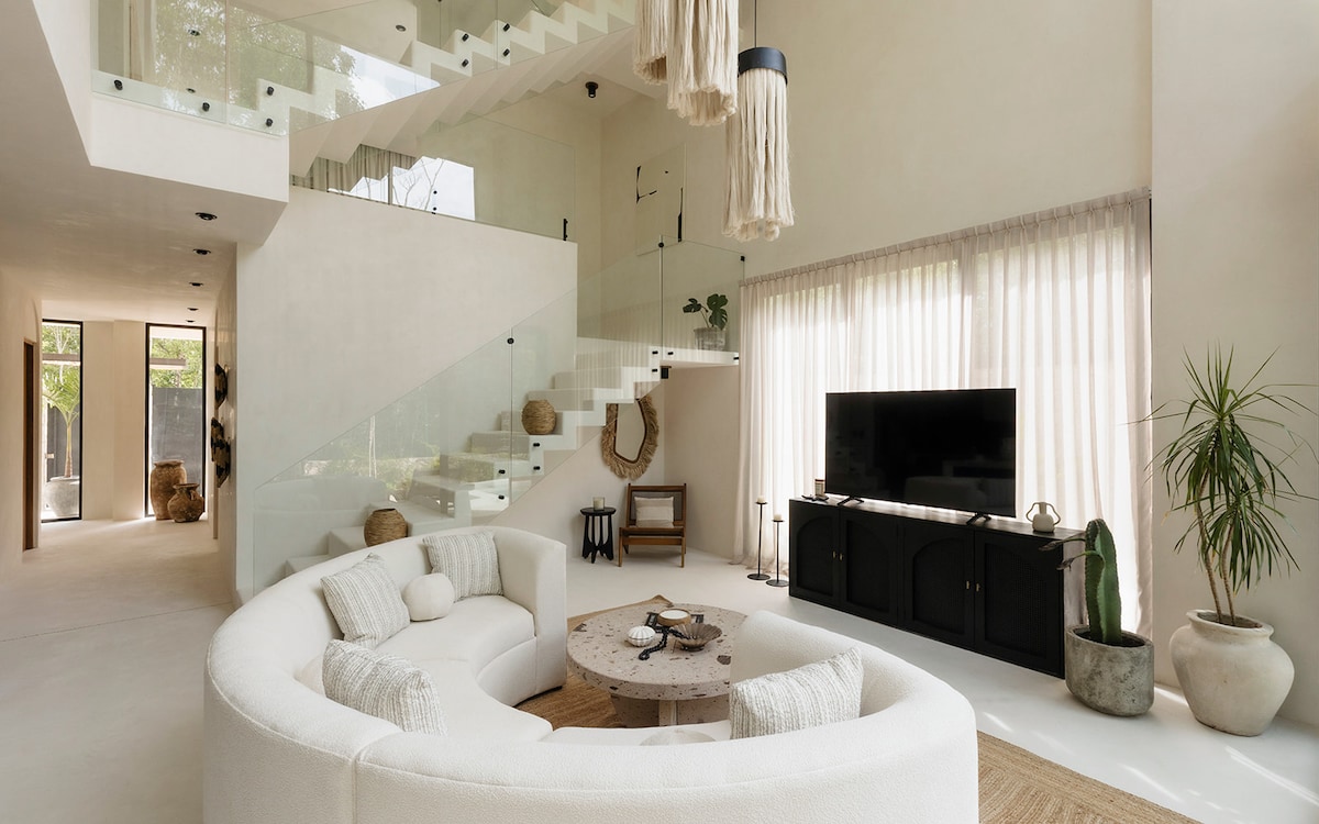 Vive lo mejor de la elegancia al estilo Tulum en nuestra residencia Boho Chic, donde se combinan el diseño y comodidad. Nuestra Villa es una casa única y lujosa de 2 recámaras y 2 baños, con alberca privada, tina exterior y un diseño galardonado inspirado en la arquitectura maya. Cuenta con cocina totalmente equipada, WiFi rápido, concierge y todos los servicios adicionales que necesites. Descubre una mezcla perfecta de estilo y privacidad para una estancia inolvidable en el corazón de Tulum.