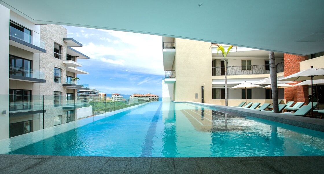 Risco 603: 1BR Downtown Bucerias con piscina en la azotea