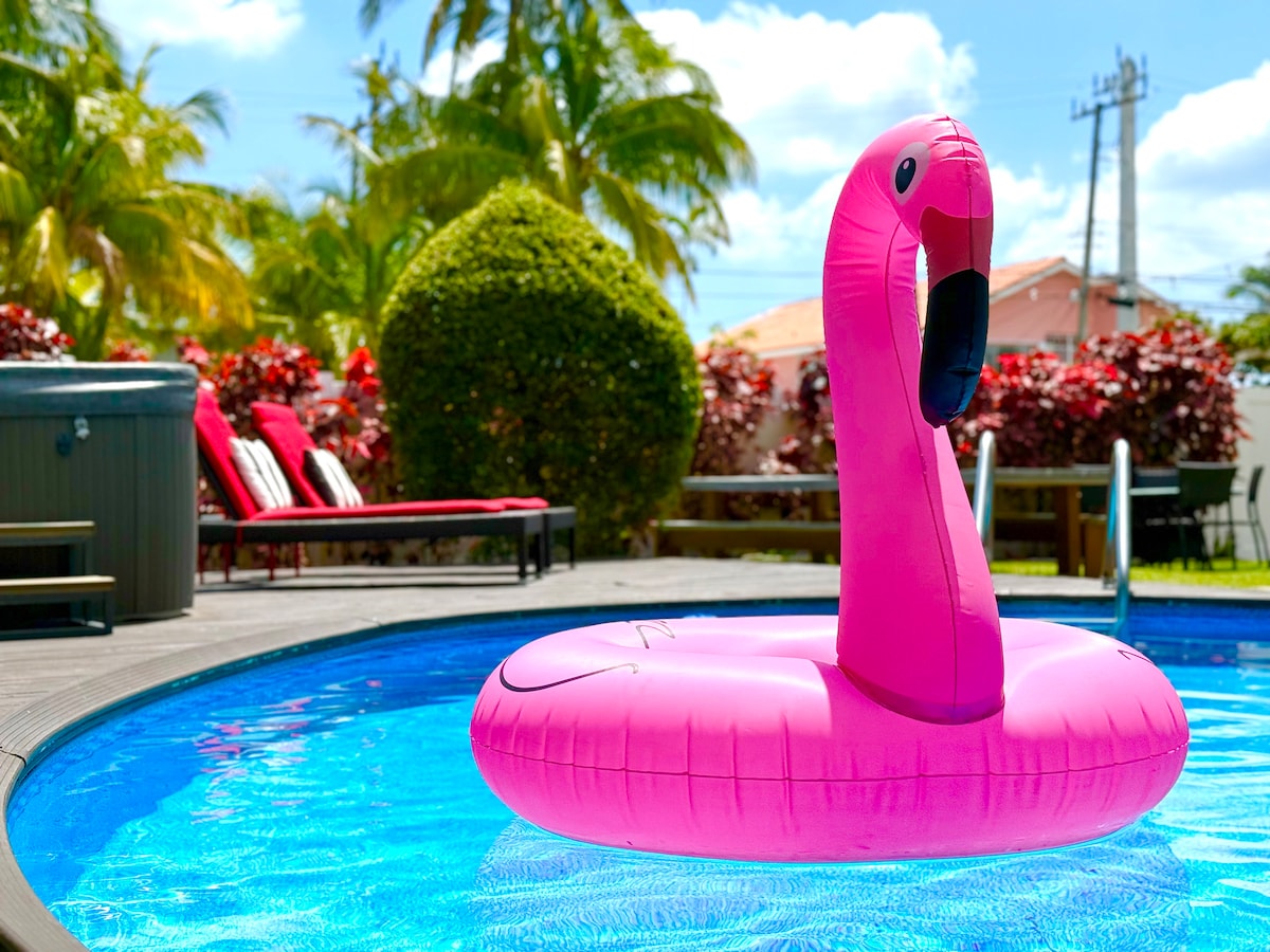 ¡Villa O so Chic Miami a pocos minutos de los restaurantes y la vida nocturna de Brickell! Relájate en la piscina climatizada privada y el spa, toma café en el patio trasero soleado y luego retírate a las lujosas camas Queen y King. Superanfitrión • Favorito entre huéspedes • Calificación de 4,98 estrellas en más de 200 reseñas Capacidad para 12 personas, 3 dormitorios y cuarto dormitorio/sala de TV. Piscinas con calefacción solar y eléctrica Wifi rápido Televisión en todas las habitaciones Cocina lista para chef con electrodomésticos de acero inoxidable, parrilla al aire libre lista para tu comida al aire libre o chef privado Hibachi. Kit de baño y zapatillas de spa