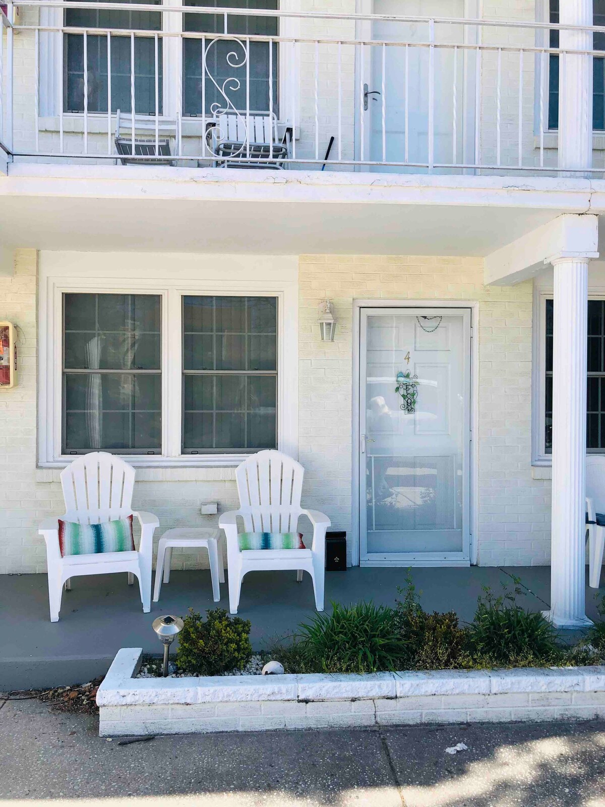 Perfecta ubicación en Avalon/Stone Harbor. Hermoso apartamento renovado en el segundo piso, con 1 dormitorio, 1 baño y 1 aseo, capacidad para 6 personas. Dos camas tamaño queen en el dormitorio y un sofá cama tamaño queen extraíble en la sala de estar. Ubicado enfrente de los campos de recreación y los centros vacacionales Windrift e Icona. Cuenta con 2 piscinas, interior + exterior, ascensor y lavandería en el edificio (no en el alojamiento). 4 pases de playa. Se proporcionan toallas de baño y sábanas.
