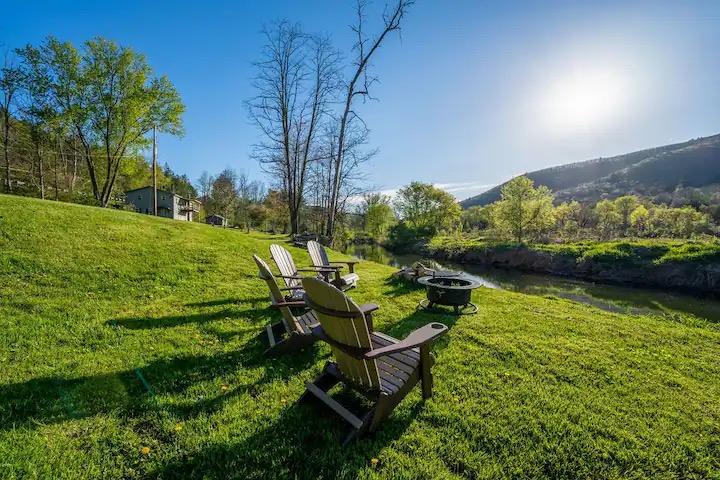 Nature's Edge: ¡río y chimenea al aire libre!