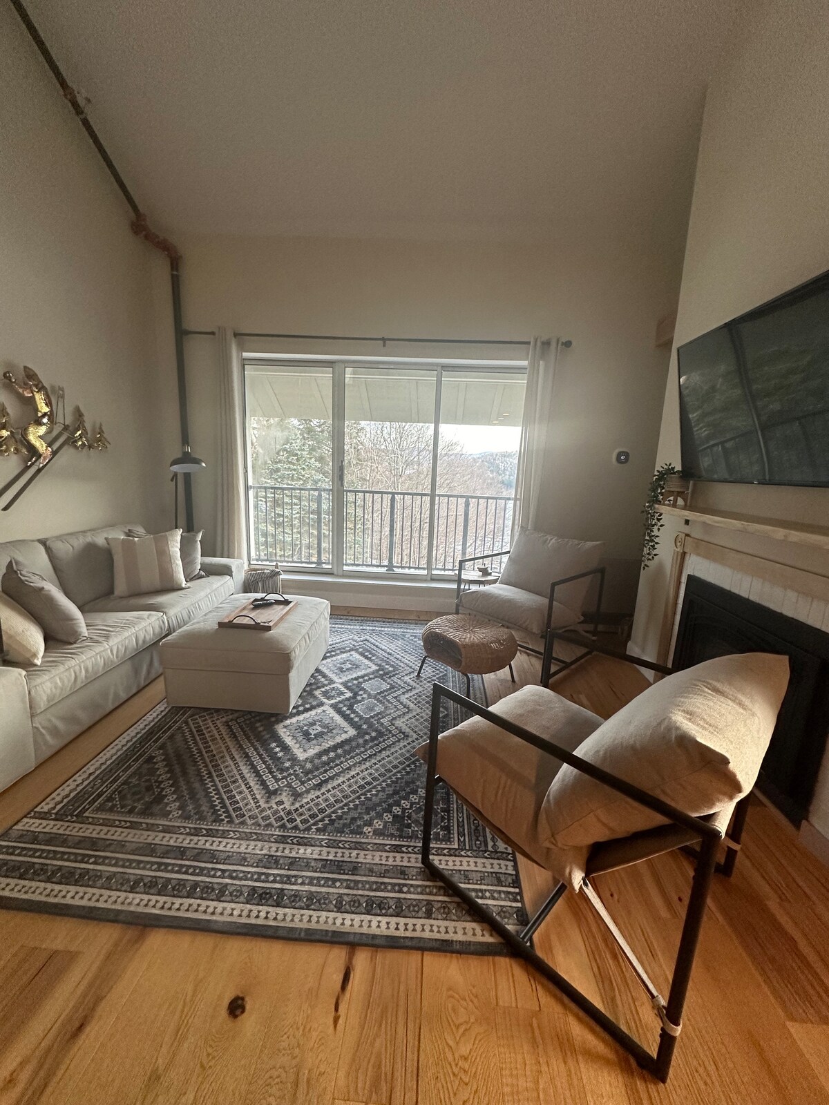 A pocos minutos de Middlebury College, este dormitorio de 1 habitación bien diseñado es el lugar perfecto para una escapada sin estrés. Excelente ubicación para que los padres se alojen cuando visitan a sus hijos de Midd. El apartamento renovado está bien equipado con calefacción/aire acondicionado central, wifi superrápido, lavadoras, cocina completa, baño completo en suite con bañera y ducha, cama tamaño queen y colchón nuevos, una gran habitación con comedor, asientos acogedores y un televisor inteligente de 65 pulgadas. Esta unidad limpia y ordenada es la definición de vida fácil.