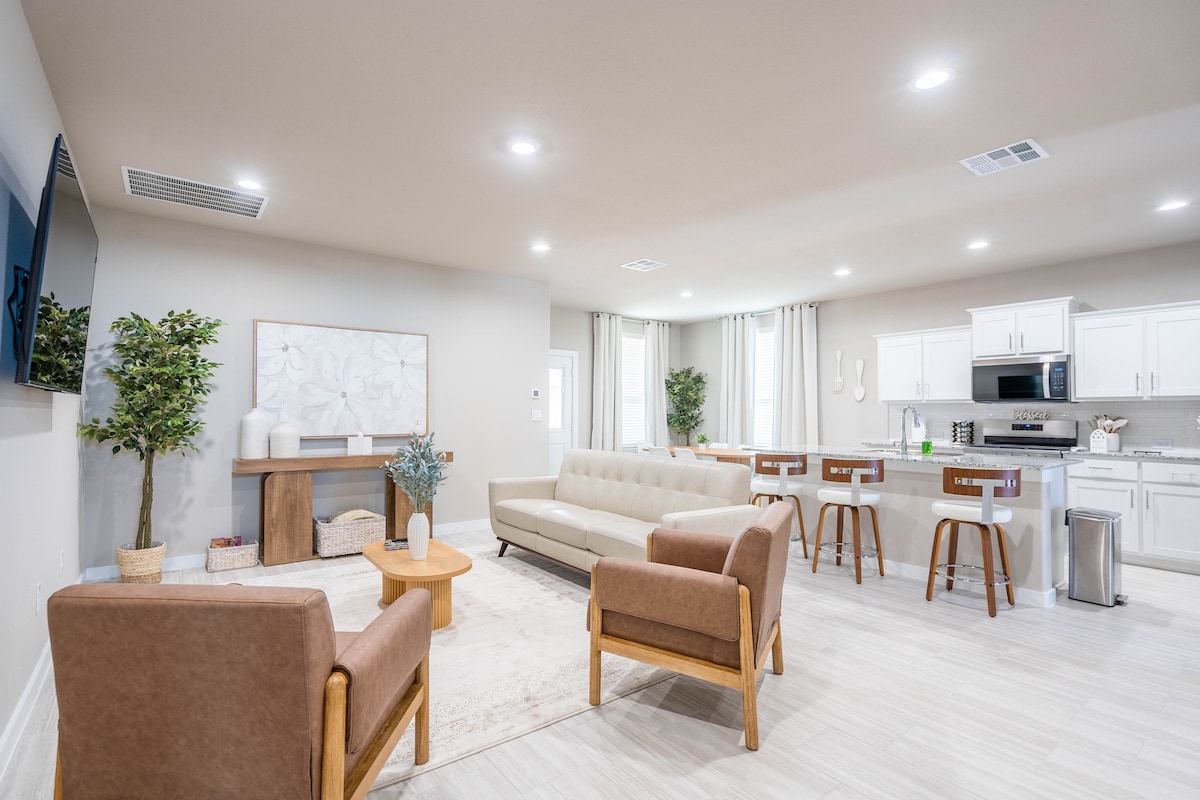 Casita de lujo ejecutiva, piscina/ jacuzzi, opciones de gimnasio. Citas de alto nivel, vecindario de un millón de dólares. Ubicación en North Midland: fácil acceso a Loop 250, SUMMIT CENTER, compras y toneladas de opciones gastronómicas. Ducha a ras de suelo con puerta de ducha europea (conforme a la ADA). Colchón con cubierta, almohadas Ralph Lauren, wifi de alta velocidad, televisores inteligentes, lavadora/secadora en suite, artículos de tocador completos, Keurig y K Cups, refrigerios, agua R.O., cocina COMPLETA totalmente surtida, lavavajillas. NO SE permiten fiestas.