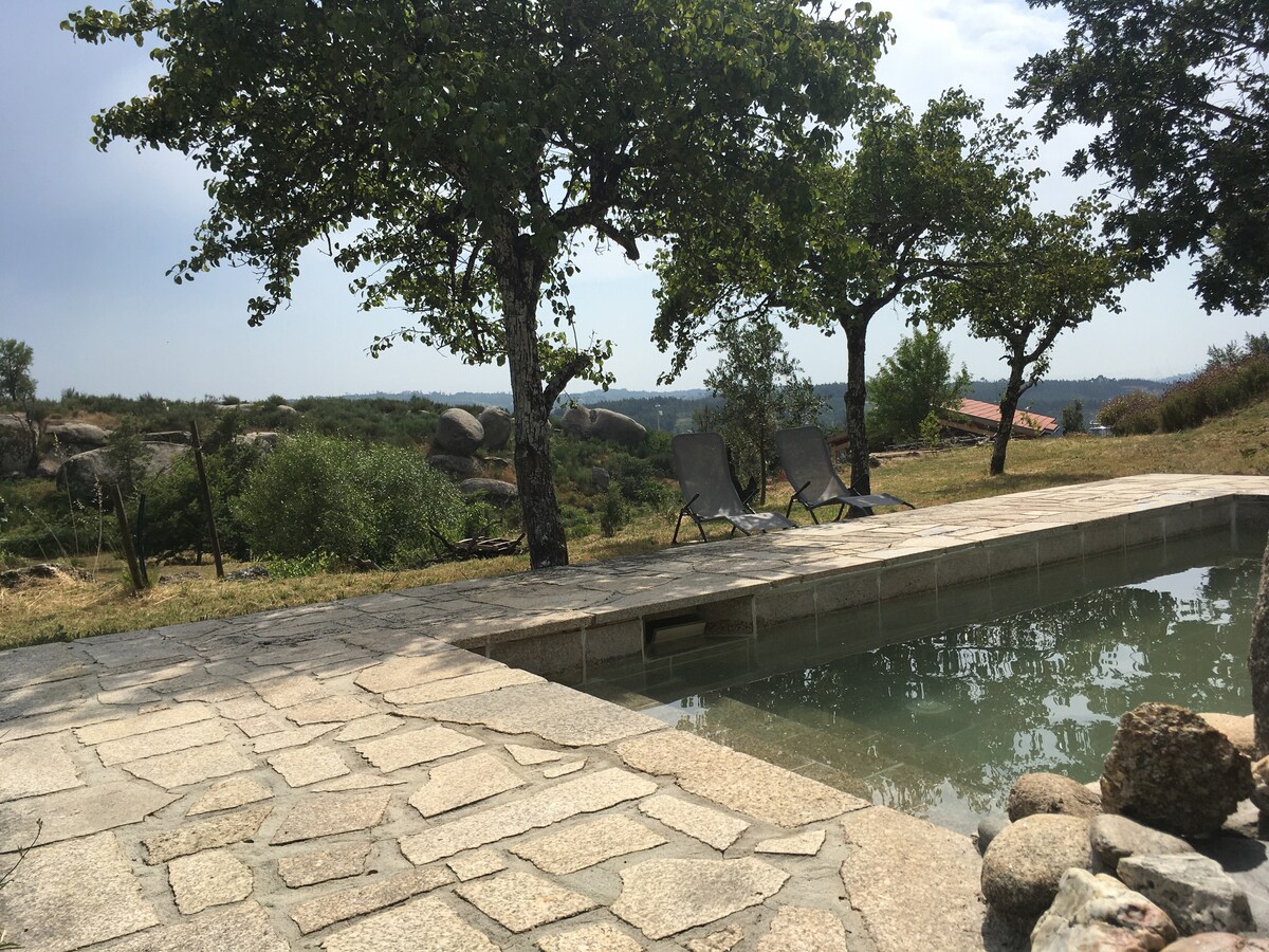 Te damos la bienvenida a nuestro espacio de retiro único para la creatividad y la quietud. Ubicado en el corazón de la naturaleza, pero cerca de la ciudad, este apartamento de un dormitorio ofrece una oportunidad única (normalmente solo disponible durante los retiros) para experimentar la profunda serenidad de la tierra, dirigida con cariño por una pareja holandesa y francesa. Despiértate con vistas impresionantes de la Sierra da Estrela y disfruta del agua de manantial rejuvenecedora en cada grifo (incluida la ducha). La piscina es lo más natural posible (pocos productos químicos).