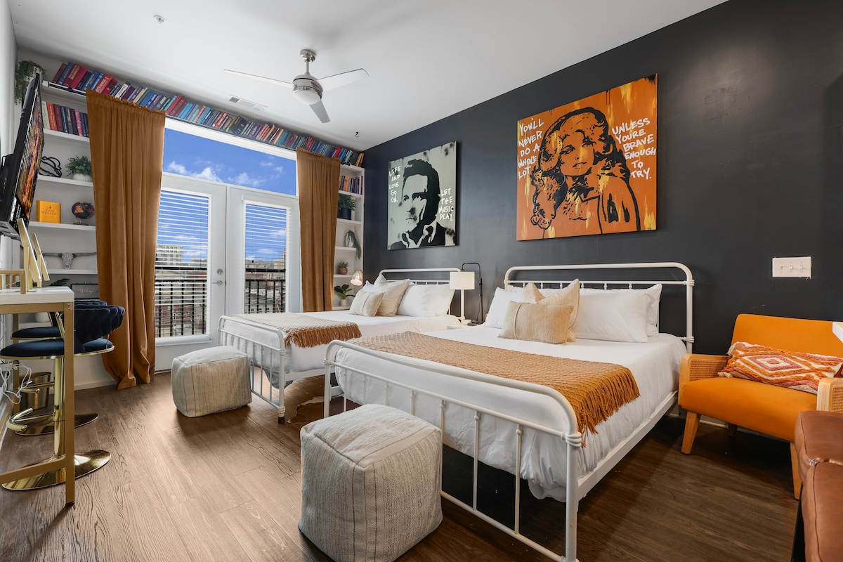 ¿Alguna vez has querido quedarte donde se han alojado las estrellas? Luego has venido al lugar correcto: ¡The Nest At Music Row! Los huéspedes, incluida la leyenda de la música country, Tanya Tucker, que se ha alojado aquí, están delirando: •A solo 1,2 millas de Broadway • Chimenea eléctrica. • Azotea en el edificio con vistas al centro y mesa de billar. •Gimnasio •Estacionamiento cerrado gratuito en el garaje •Depósito de equipaje ¿Listo para disfrutar de este elegante condominio en Nashville? ¡Reserva con nosotros hoy! *Al reservar esta propiedad, aceptas las Reglas de la casa y el Contrato de alquiler*