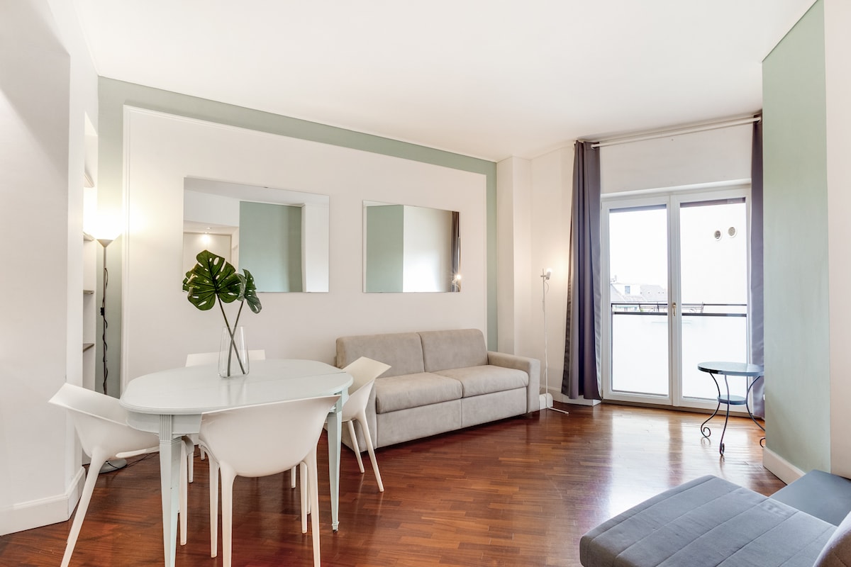 Un loft elegante y luminoso ideal para viajeros, profesionales/trabajadores remotos y huéspedes de ocio por igual. 60 metros cuadrados con vigas a la vista y terraza privada. Wi-Fi muy rápido de 1 Gbps de fibra, escritorio grande, espacio de trabajo cómodo, aire acondicionado y comodidades modernas. Situado en una zona moderna y cosmopolita, llena de arquitectura Art Nouveau, cafés independientes, bares de diseño y restaurantes internacionales. A pocos minutos a pie de Corso Buenos Aires, una de las calles comerciales más largas de Europa.