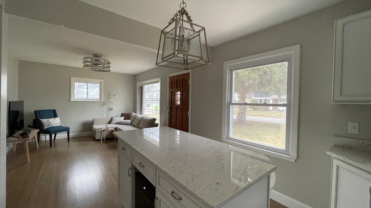 Te damos la bienvenida a nuestra casa dúplex de 2 dormitorios y 1,5 baños en Walled Lake, MI. Hemos amueblado la casa con un tema de viajes de buen gusto para reflejar nuestro amor por los viajes por el mundo. Tuvimos especial cuidado en asegurarnos de que cada detalle fuera pensado para que te sintieras tan cómodo como lo estarías en un buen hotel. Hemos incluido extras como ventiladores de techo en ambos dormitorios, una mesa y sillas de patio, juegos de mesa familiares, libros para leer y utensilios de cocina de plástico para niños. No vivimos aquí, pero vivimos muy cerca.