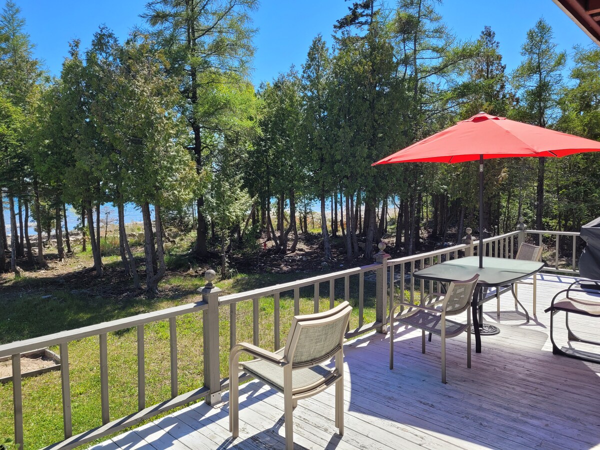 Nuestra cabaña se encuentra en el lago Larry, en Dorcas Bay. La casa es tranquila, privada, en un lago interior poco profundo con muelle. Relájate por la noche junto a la chimenea y disfruta de las hermosas puestas de sol desde nuestra vista hacia el oeste. La península de Bruce es famosa por sus orquídeas únicas y sus cedros enanos de 1000 años. Esperamos que disfrutes de los hermosos alrededores de nuestra casa de campo. Se encuentra a 15 minutos del centro de Tobermory y de todos los servicios, así como a minutos de la entrada a ambos parques nacionales.