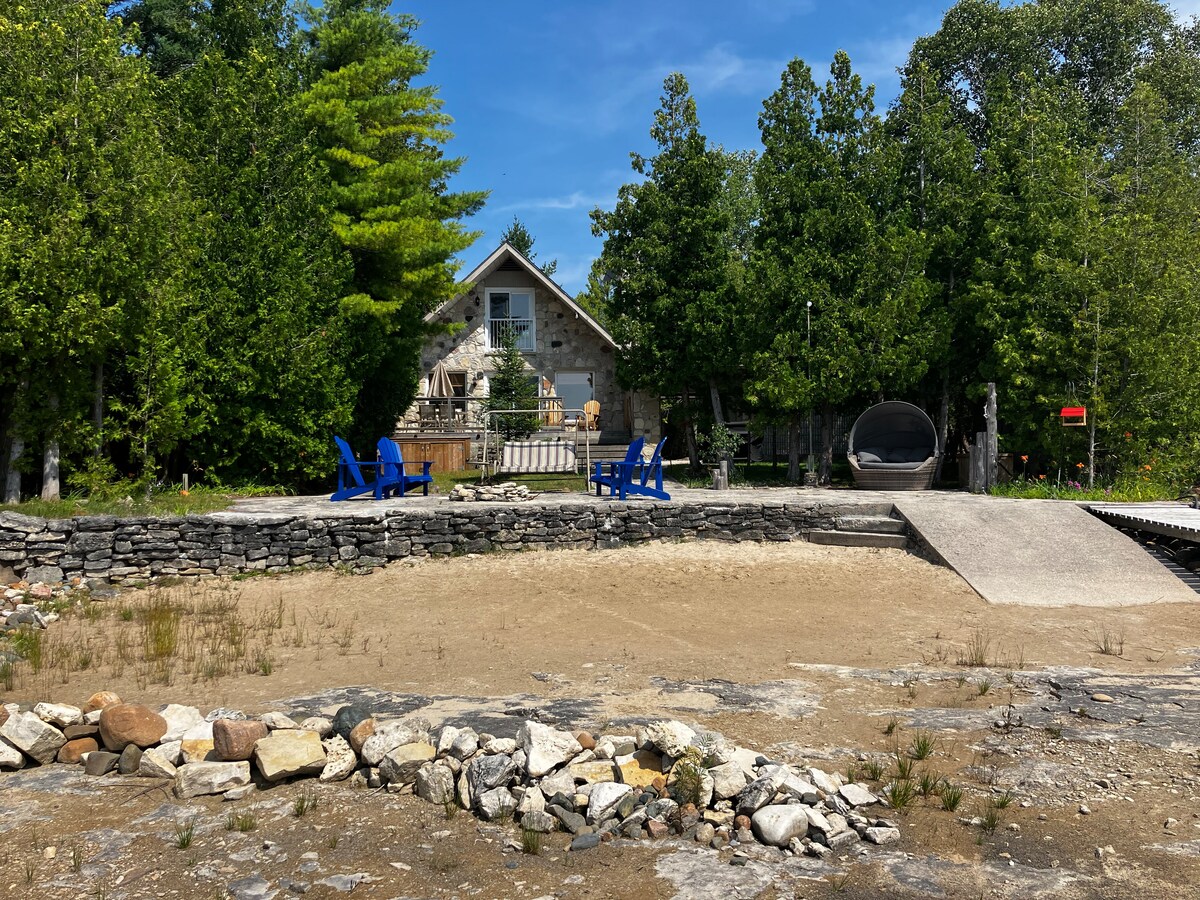 Ubicación; ubicación; ubicación. Espectacular casa de campo frente al mar durante todo el año en el lago Hurón, a 10 minutos de Tobermory. Destacada en un artículo de Trips to Discover. Toda la planta principal, techos de 9 pies y 2 cubiertas te esperan. El acceso privado al agua junto con los kayaks y la tabla de paddle surf suministrados mejoran tu estancia. La gran chimenea al aire libre permitirá muchas horas de entretenimiento nocturno. Mira los vídeos de las visitas en YouTube: «Welcome to Tamarack By The Bay» de CL Visuals y Calvin Lu.