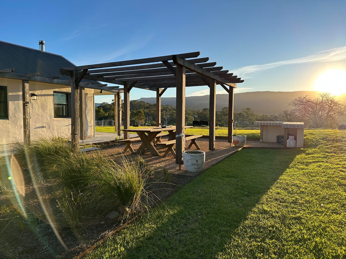 Relájate en esta luminosa y espaciosa granja de estilo francés con su generosa cocina, baño de lujo, baño al aire libre para observar las estrellas y piscina para los días calurosos. La gran terraza es un lugar perfecto para disfrutar de las vistas al mar y al entorno natural, con una increíble variedad de aves, junto con las cabras, gansos, pavos reales y alpacas que deambulan por la granja. Estamos a solo 10 minutos de las playas vírgenes de Bawley y ofrecemos transporte a una tarifa competitiva desde y hacia senderos cercanos, lugares para bodas y bodegas.