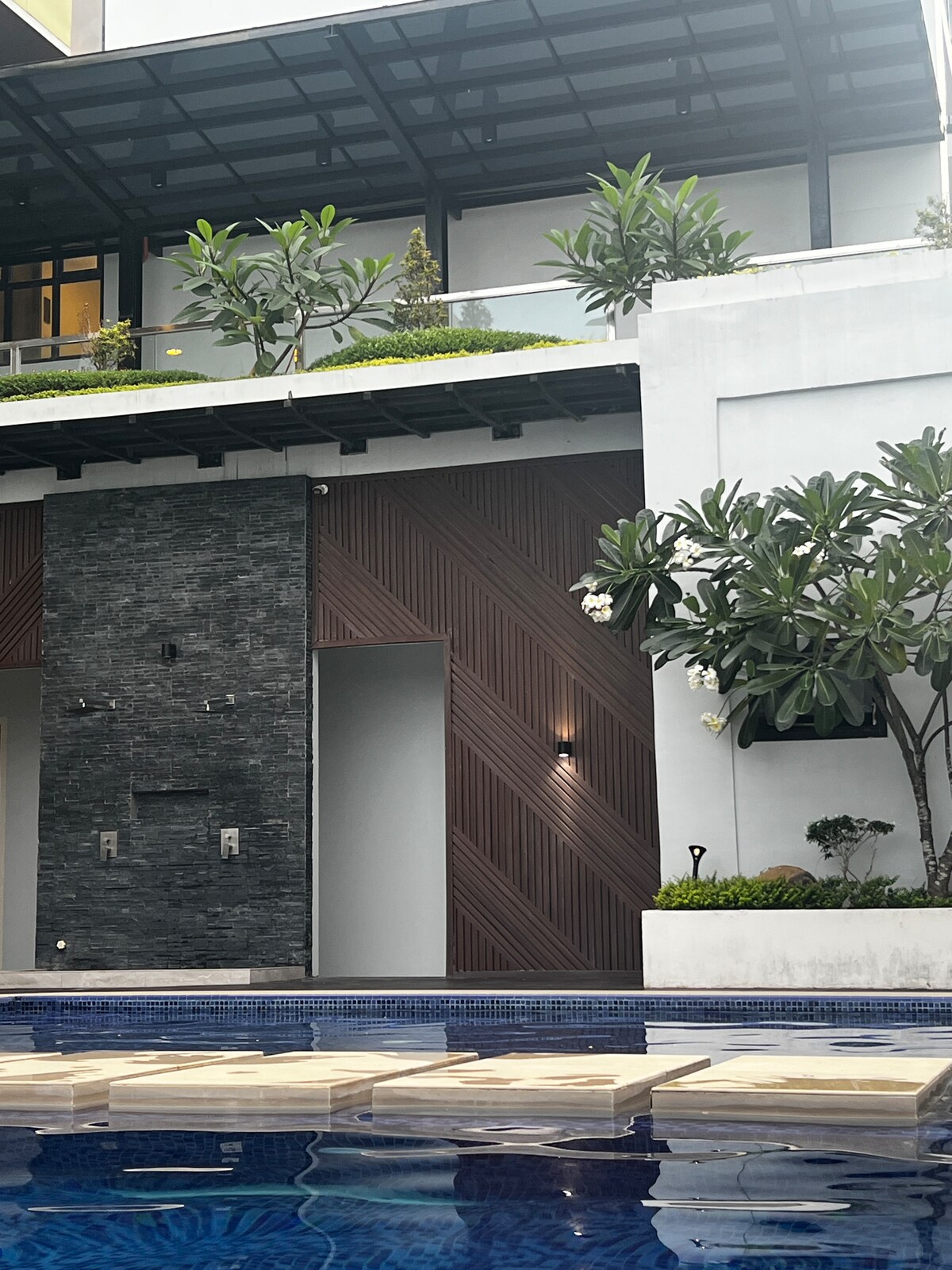 Tómate un descanso y relájate en esta propiedad minimalista de 100 metros cuadrados. Nuestra pequeña casa es toda tuya para disfrutar con amigos y familiares. Tiene una piscina pequeña, de cuatro pies y medio de profundidad, la otra mitad es de dos pies para que los niños naden. La propiedad cuenta con cocina al aire libre y comedor donde podrás relajarte y ver Netflix mientras comes. Hay un bar al aire libre para disfrutar de tus bebidas. El dormitorio tiene 3 camas tamaño queen, totalmente climatizado. No es un hotel de cinco estrellas. Esta es una estancia en casa.