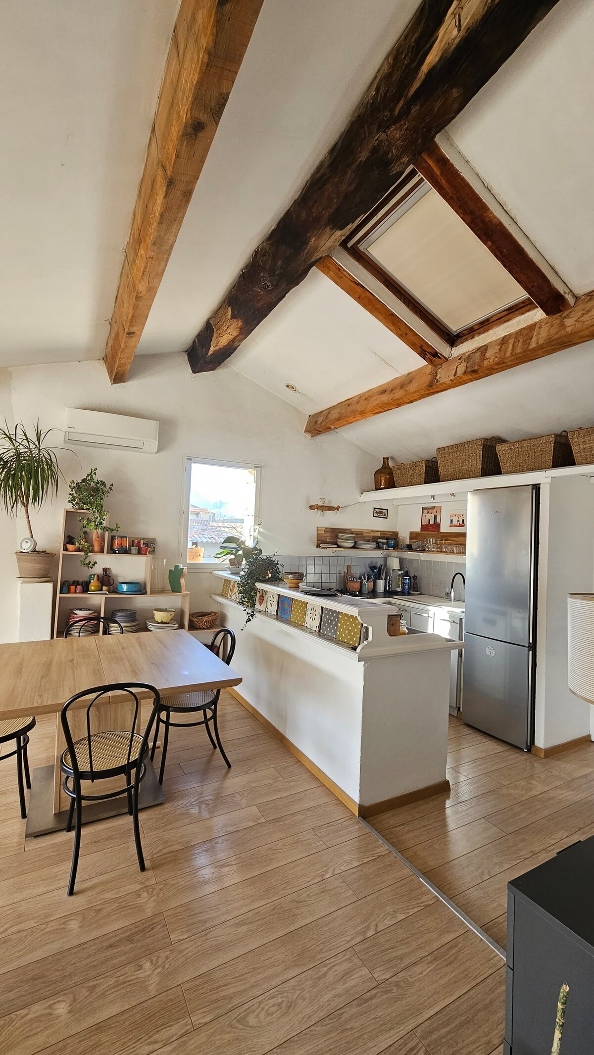 A orillas de la aldea de Lointes Bastides, que data del siglo XVII, la casa se abre a un jardín de 2 hectáreas al pie de la Combe de Lourmarin. Perfecta para disfrutar de unas vacaciones en la naturaleza o trabajar a distancia (conexión a Internet de fibra de 100 Mbps). La casa de 120 m2 consta de una sala de estar con una gran mesa de madera, una cocina abierta, una estufa de leña para el invierno que se abre a la terraza privada. Los dos dormitorios con baño que se abre están equipados con un escritorio.