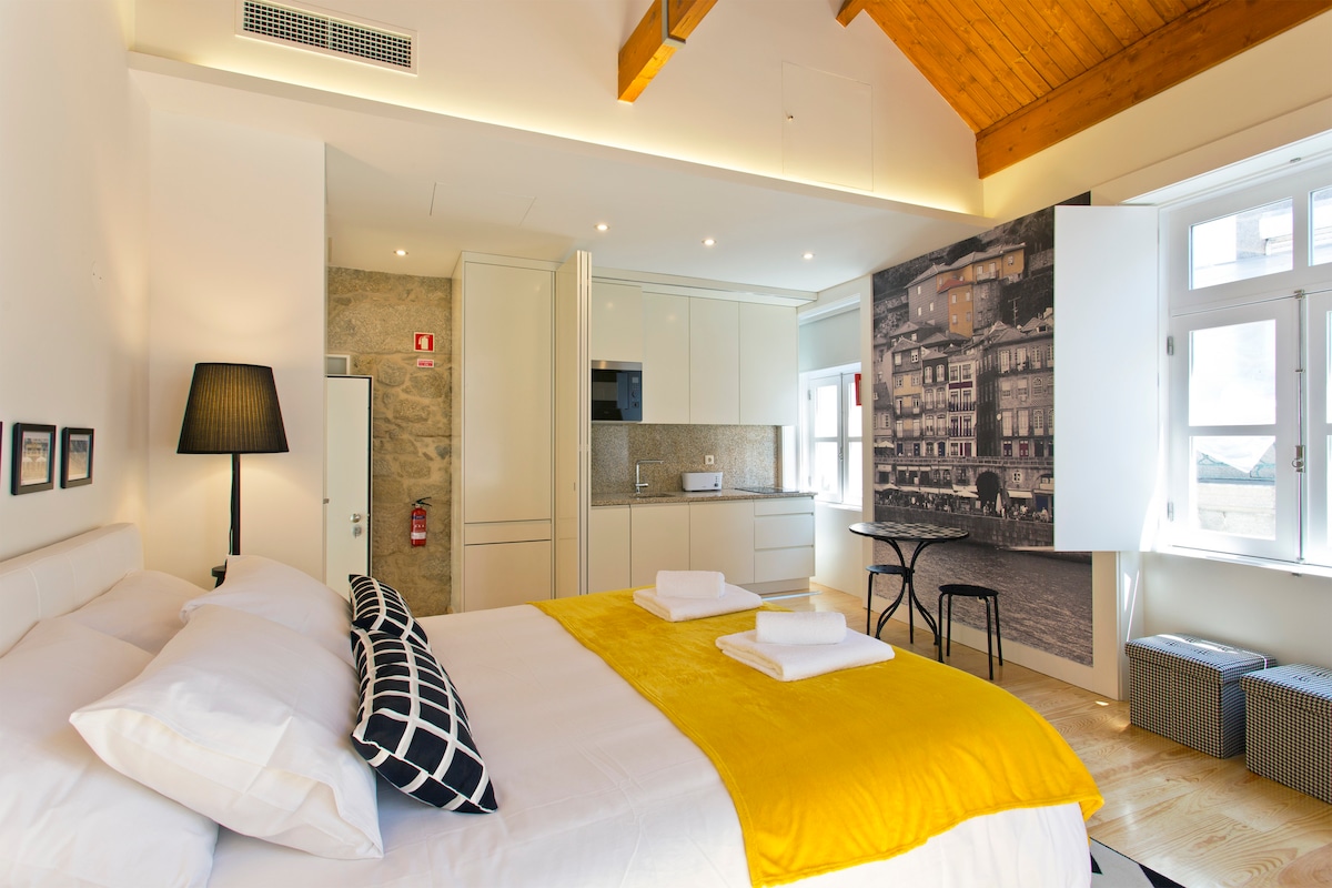 Ubicado en un edificio rehabilitado de alto valor patrimonial en Ribeira junto al río Duero - Patrimonio de la Humanidad por la UNESCO. Este estudio totalmente equipado será su casa en el corazón de Oporto. Este nuevo concepto de hosting ofrece una mayor inmersión en la vida y cultura de la ciudad. Con un confort de calidad y una decoración distinta, será el lugar donde encontrará su refugio con vistas privilegiadas sobre uno de los barrios más auténticos de Oporto.