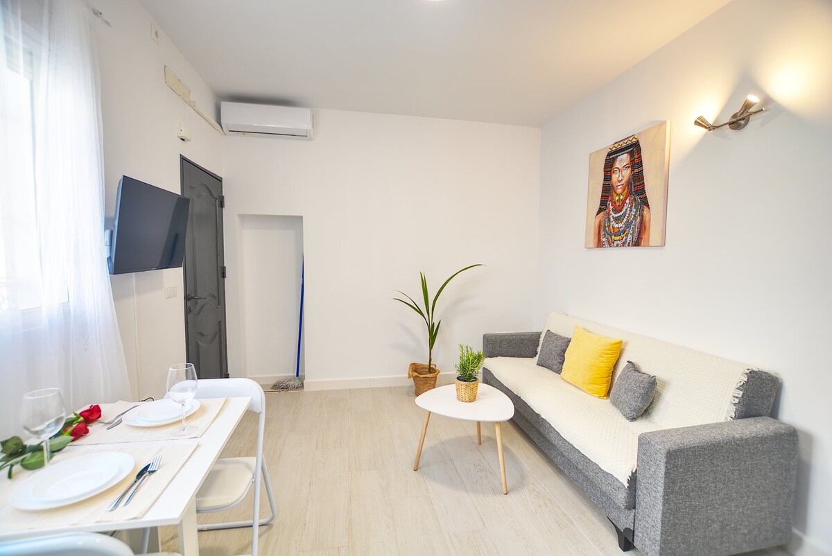 This unique flat has its own style. This luxurious studio boasts incredible sea views through a glass wall that is over 4 meters long. Take advantage of Fuengirola's fantastic climate in this house with a private outdoor kitchen. Enjoy your morning coffee at the kitchen bar overlooking the sea, and head down to the beach (12-minute walk) or relax by the pool. The L5 bus stop is 150 meters away. This place features an office space and super-fast 300mbps Wi-Fi.
