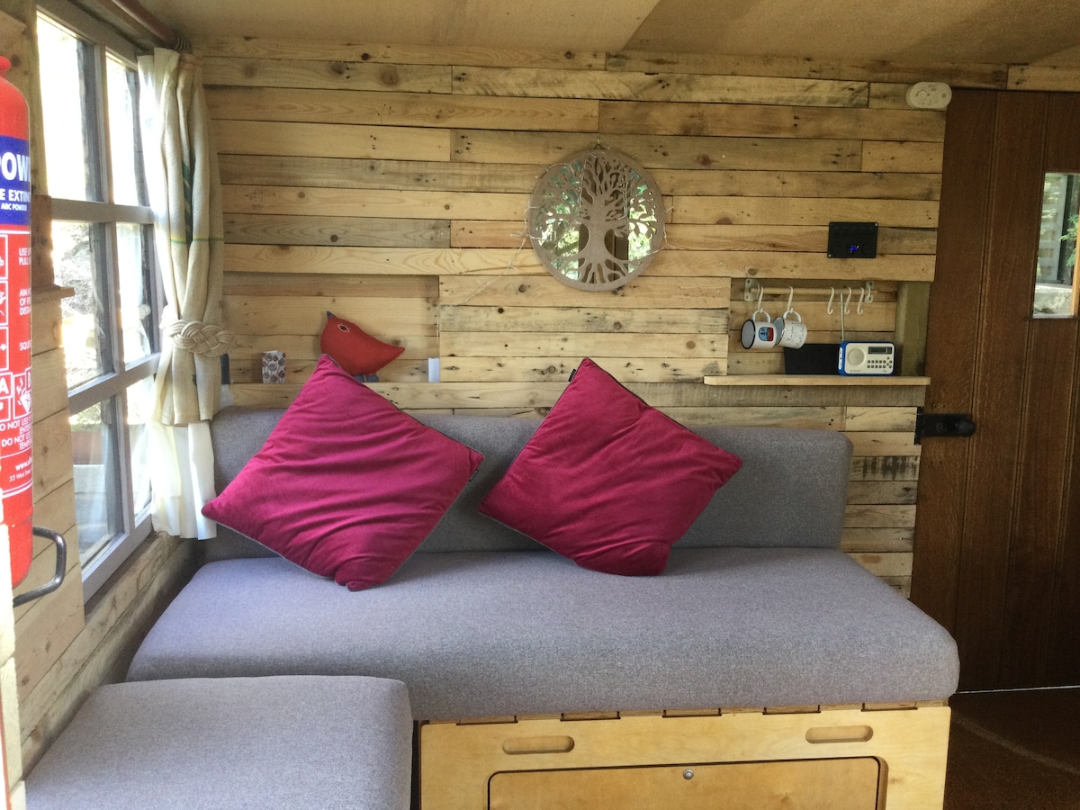 Nuestra sencilla cabaña de madera tiene iluminación con energía solar y una terraza orientada al sur para disfrutar de las vistas panorámicas. Está bien aislado y protegido por los árboles circundantes. Hay senderos y senderos para bicicletas desde la puerta. La microcervecería Zapato está a diez minutos a pie. El nuevo cobertizo de servicios públicos fuera de la red se completó en diciembre de 2025. Está junto a la cabaña. Incluye una zona de cocina básica, nevera de camping y un pequeño baño con inodoro de compostaje (sin agua), lavabo y ducha. ¡Como acampar sin la tienda!
