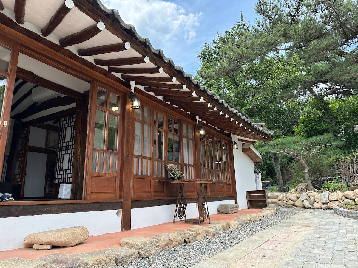 [Hwangridan-gil/Woljeonggyo/Bomun/Bulguksa/Gyeongju World/Museum] 10-15 minutos, jardín privado + proyector de haz + bañera grande + hanok Disfruta de un día lentamente en el alojamiento privado hanok 'Yeoye' frente al bosque de pinos bajo la montaña Namsan en Gyeongju. A un paso del ruido de la ciudad, comienza una taza de café y un descanso como en un jardín. El puente y el museo de Woljeong están a 10 minutos en auto, y Hwangridan-gil, Bomoon, Bulguksa y Gyeongju World están a 15 minutos. Cuando disfrutes de la carrera y regreses a tu alojamiento, puedes disfrutar de un descanso tranquilo y apacible con un jardín privado, una bañera grande y un cine con proyector de luz. - Qué se proporciona 2 botellas de agua, pan de sal, cápsula de café, copa de vino/abridor de vino, artículos de tocador (cepillo de dientes/pasta de dientes/jabón), champú/acondicionador/gel de baño, toalla, secadora, hanbok diario - Electrodomésticos Proyector de vigas, tostadora Valmuda, cafetera Nespresso, microondas, nevera, cafetera - Desinfección Recibimos servicios regulares de cuarentena de CESCO para una estancia más cómoda.