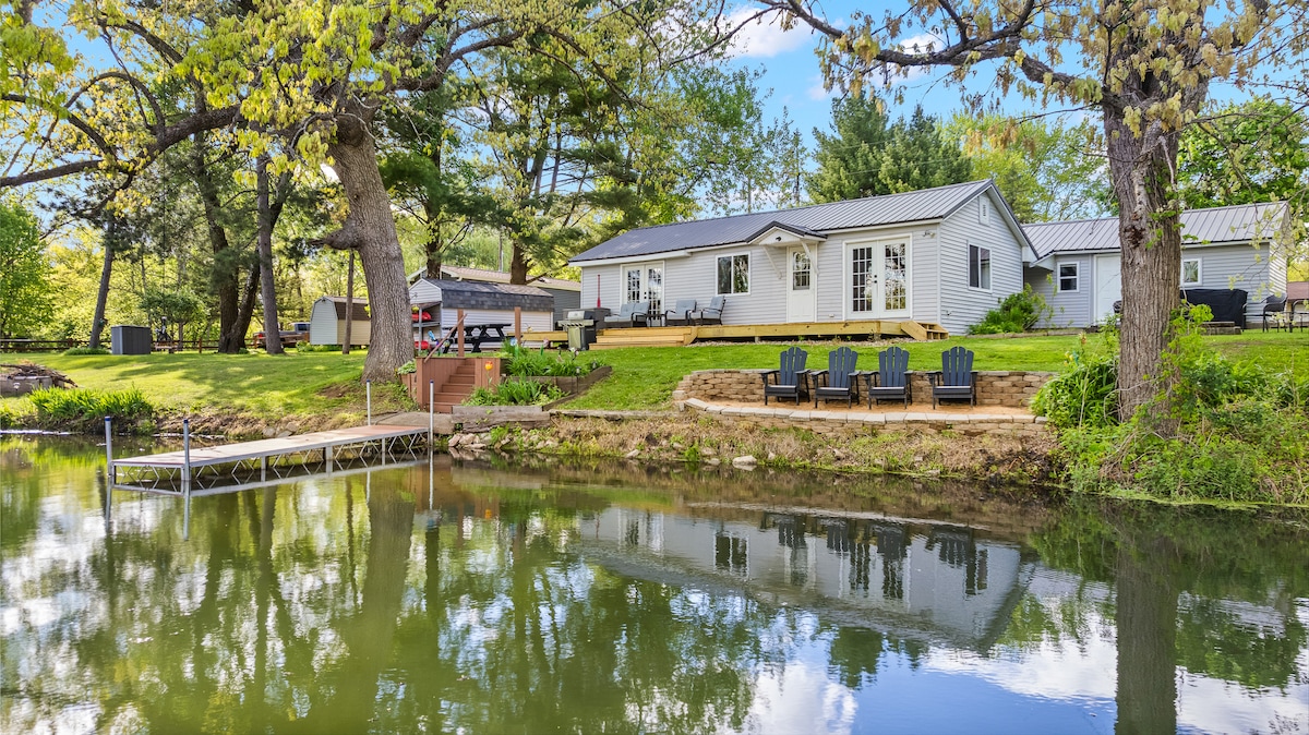 ¡Esto no es solo una casa, es una experiencia! Casa de ensueño de más de 2000 pies cuadrados con mucha iluminación natural. Lago sin un descenso empinado ni escaleras. Wifi de alta velocidad y televisores (sin cable) en todas partes. Se suministran todos los artículos básicos (jabón, secador de pelo), incluida una cocina totalmente equipada. 6 camas tamaño queen, 1 cama individual, 1 sofá cama individual y 1 cama completa y cama futón completa con 2,5 baños (consulta la sección de acceso). Juegos de arcade, juegos de interior/exterior, una mesa de juego para cartas/rompecabezas y un futbolín de tamaño completo.