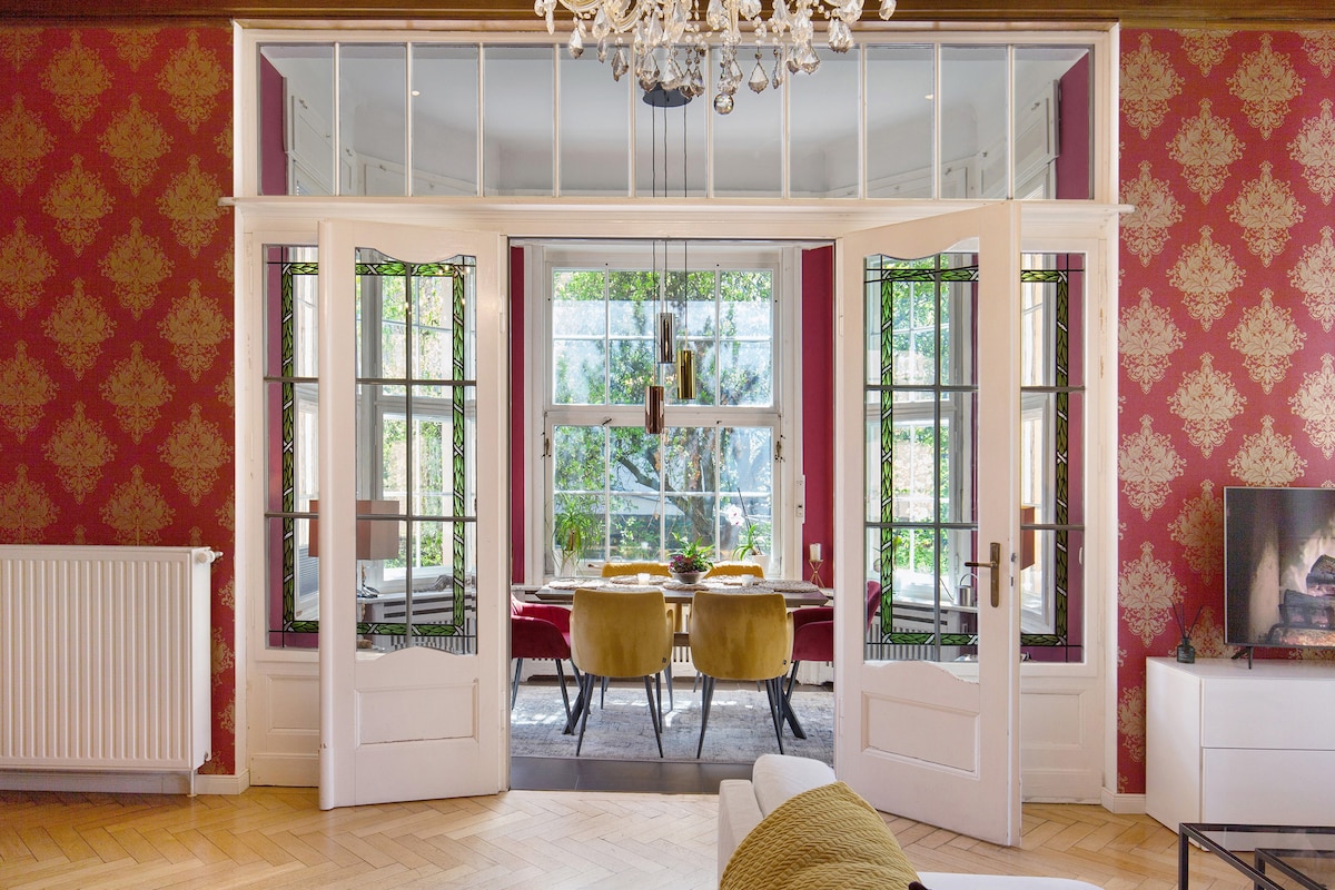 Descubre toda la planta superior de nuestra Villa Harmonie en Dresde con aprox. 70 metros cuadrados para vosotros. Tiene dos dormitorios y una sala de estar con sofá cama y chimenea. La cocina totalmente equipada tiene horno, cocina, nevera con congelador, lavavajillas y cafetera Siemens totalmente automática. El hermoso baño cuenta con una ducha de vidrio y una bañera de hidromasaje. Hay mucho entretenimiento gracias a la PS4 y el iPad. Disfruta del encanto de un ático con hermosas pendientes en el techo.