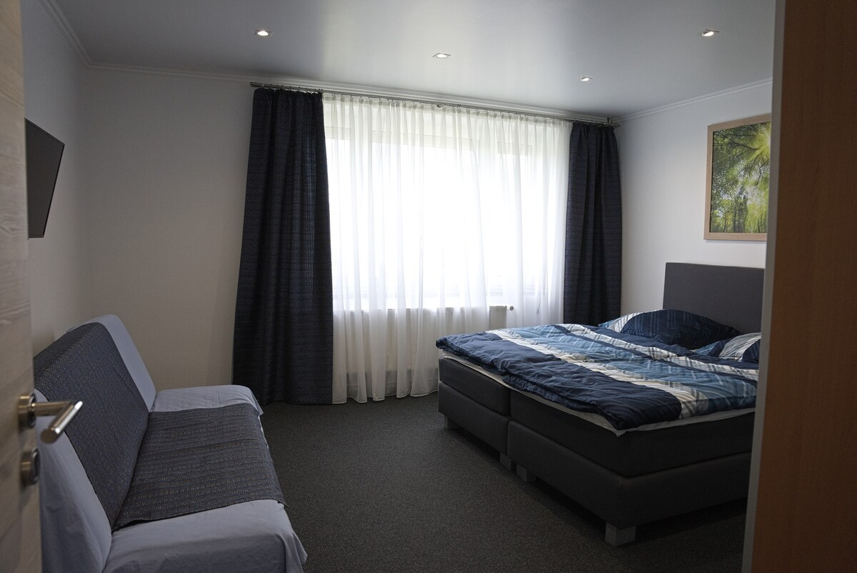 El departamento de una habitación recientemente renovado se encuentra en una zona tranquila con una encantadora vista al prado. El acogedor dormitorio está equipado con una cama doble, un sofá, un armario y un televisor inteligente de pantalla plana. En la zona de cocina encontrarás microondas, estufa eléctrica, horno, horno, hervidor de agua, hervidor de agua, tostadora, platos y muchos cubiertos. El baño cuenta con una ducha, un inodoro con función de bidé de agua caliente, secador de pelo y calefacción por suelo radiante. El wifi incluye
