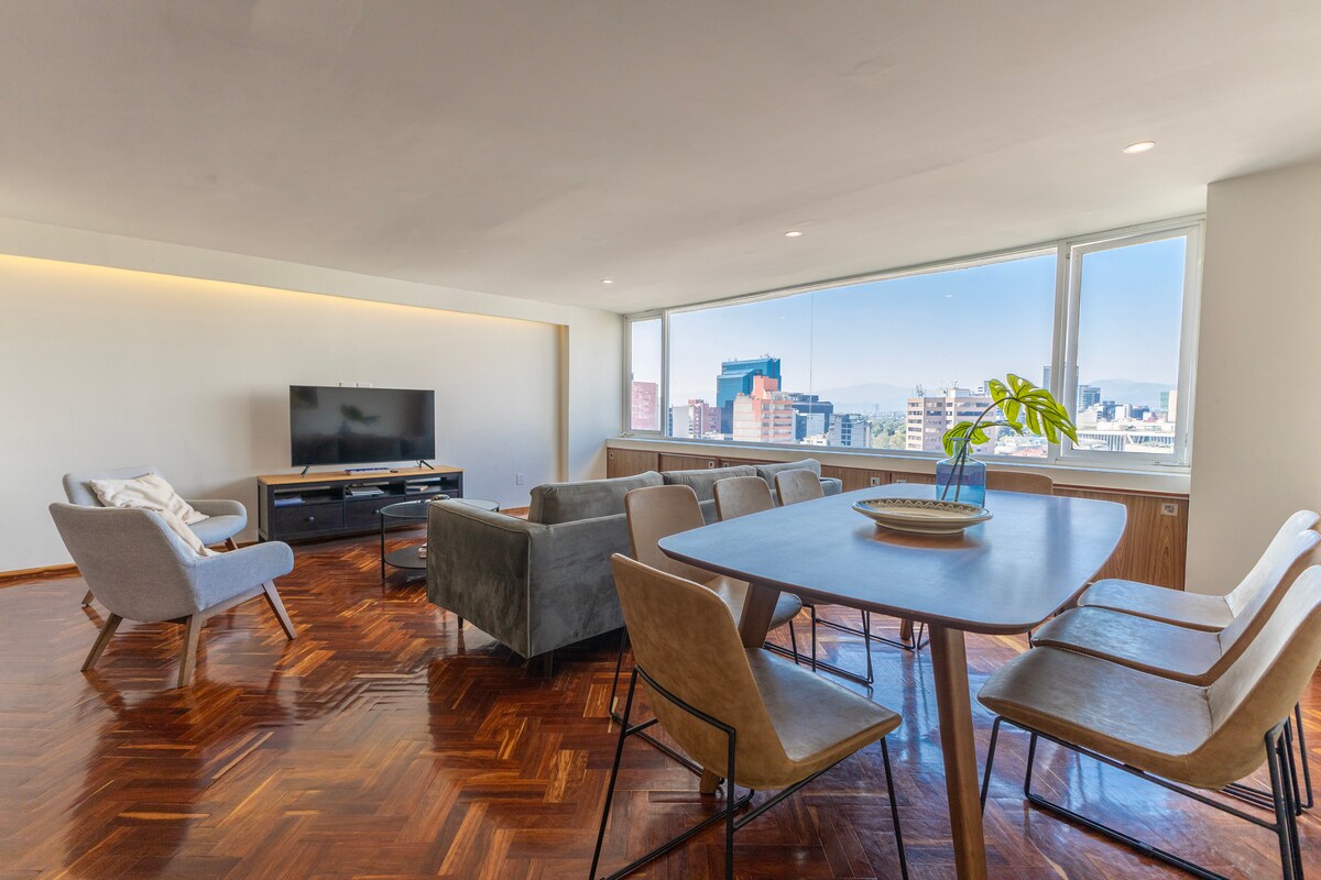 Este único y acogedor pent-house se encuentra al interior de un emblemático desarrollo construido en la colonia Condesa. Su arquitectura es una interpretación contemporánea del Art Deco. Un estilo que define a La Condesa. Está ubicado en una hermosa y arbolada zona. Su atmósfera es muy familiar, con gente joven y vibrante. Su entorno nos invita a salir, caminar, relajarse y descubrir nuevas experiencias.