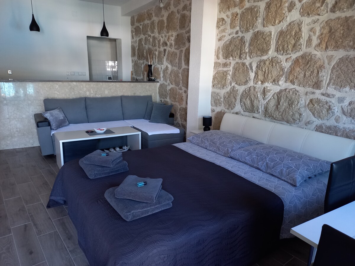 Encantador estudio con impresionantes vistas al valle Ubicado en una casa de piedra centenaria en el pueblo de Goveđari, este acogedor estudio ofrece impresionantes vistas al valle y acceso a una terraza compartida. Ubicado en el corazón del Parque Nacional de Mljet, a solo 10 minutos a pie de los famosos lagos de agua salada, perfecto para nadar o relajarse en la naturaleza. Disfruta del encanto de una casa histórica combinada con la tranquilidad de uno de los entornos naturales más bellos de Croacia.