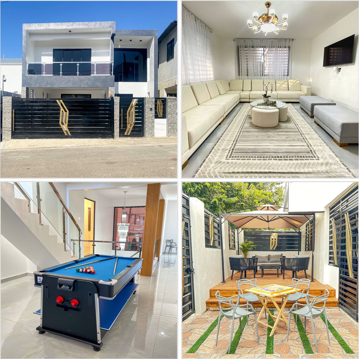 ¡Experimenta este lujoso "paraíso tropical" centrado en la seguridad y la comodidad! Ubicado a 10 minutos del aeropuerto STI y a 10 minutos del centro de Santiago* Toda la propiedad está cerrada con una valla alta, cámaras de vigilancia en todo el exterior de la casa, sistema de alarma y entrada principal cerrada. Casas 8 huéspedes+* 4 dormitorios* 3 camas tamaño king: 1 cama tamaño queen * 4 baños*, piscina, cocina al aire libre con parrilla, cancha de baloncesto, aire acondicionado y ventilador de techo en cada dormitorio, TV y altavoz BT.