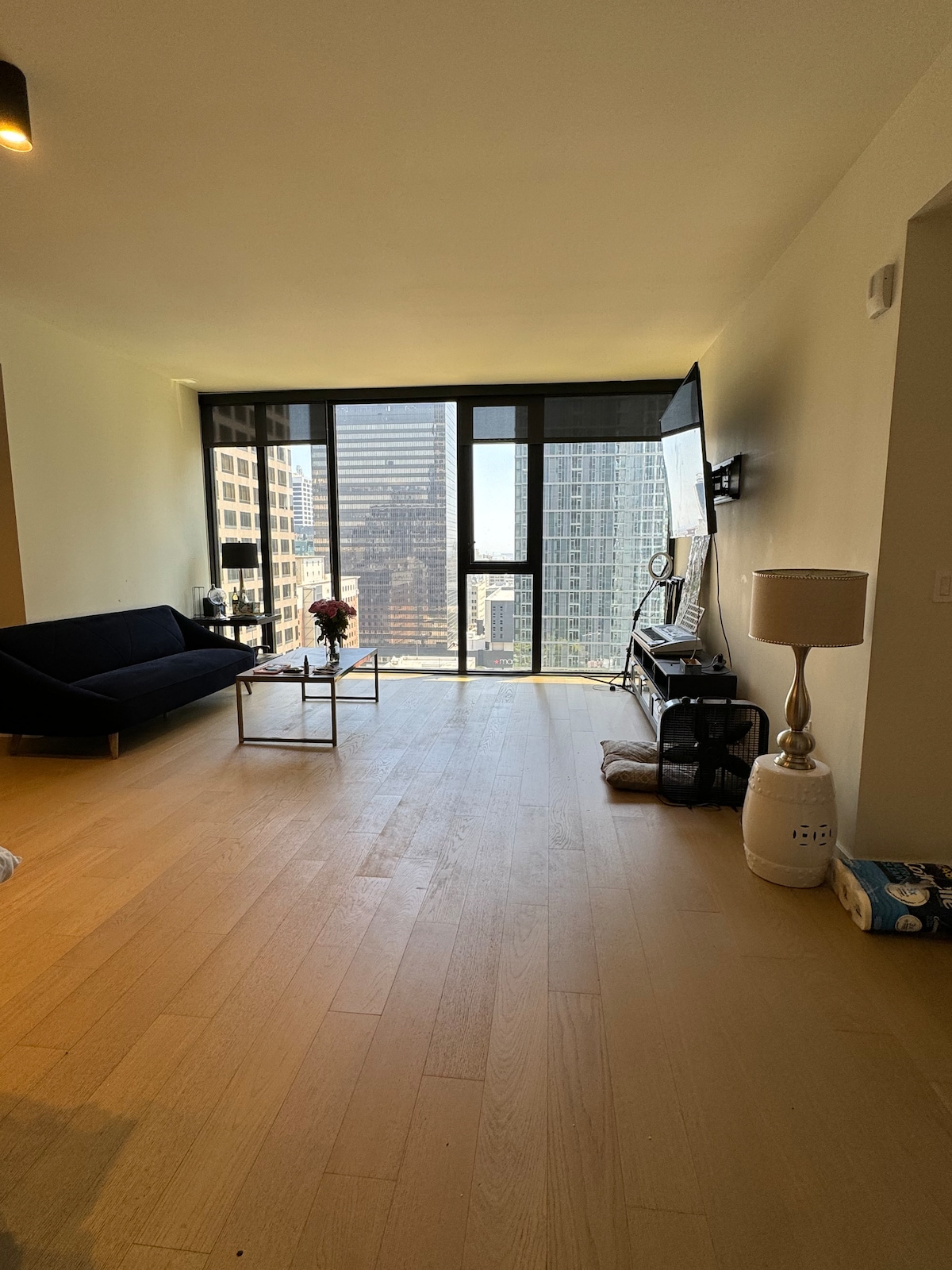 55"TVbedroom with walk-in wardrobe shared bathroom