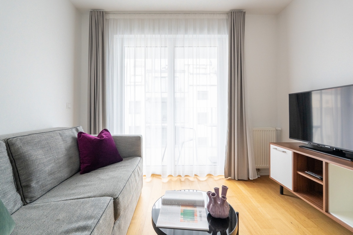 Welcome to our Clear 1BR Suite, located directly in front of the U1 metro station Altes Landgut. Stephansplatz and Vienna’s city center are just 10 minutes away by metro. Key Highlights: • Professionally managed property • Paid garage parking available on the premises • On-site amenities: luggage lockers, laundry room & lobby