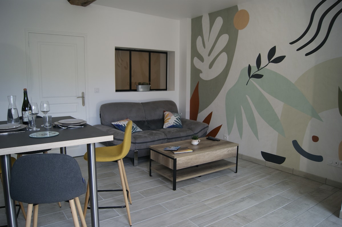 "Le boudoir", bonito estudio independiente con una cuidada decoración en la planta baja de una casa renovada del siglo XVI. Nuestra propiedad, en el centro del pueblo. Se encuentra a 20 minutos del centro de Le Mans y a 10 minutos de la autovía. Quedará seducido por el encanto y la tranquilidad del lugar y estaremos encantados de recibirle en la convivencia. Podrá disfrutar de los exteriores, se ponen a su disposición mesas. No dude en ponerse en contacto con nosotros para obtener más información.