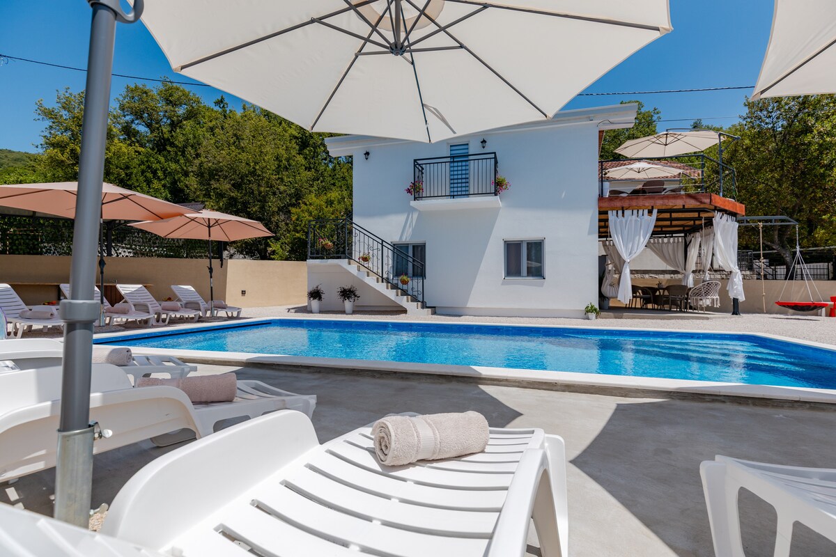 La casa 12 está cuidadosamente decorada, la casa encantadora y cómoda, solo para los huéspedes. Cada detalle ha sido cuidadosamente elegido para ofrecerte a ti y a tu familia unas vacaciones increíbles y relajantes. La terraza está amueblada con mesa y sillas de comedor, tumbonas, nevera exterior y barbacoa eléctrica. La piscina tiene su propia terraza amueblada y engañosa, accesible desde la terraza principal. La casa es ideal para familias con niños porque hemos equipado el patio con un pequeño parque infantil.