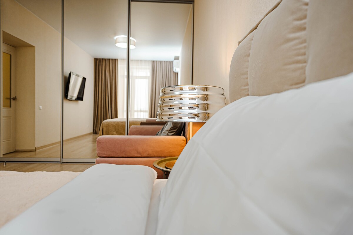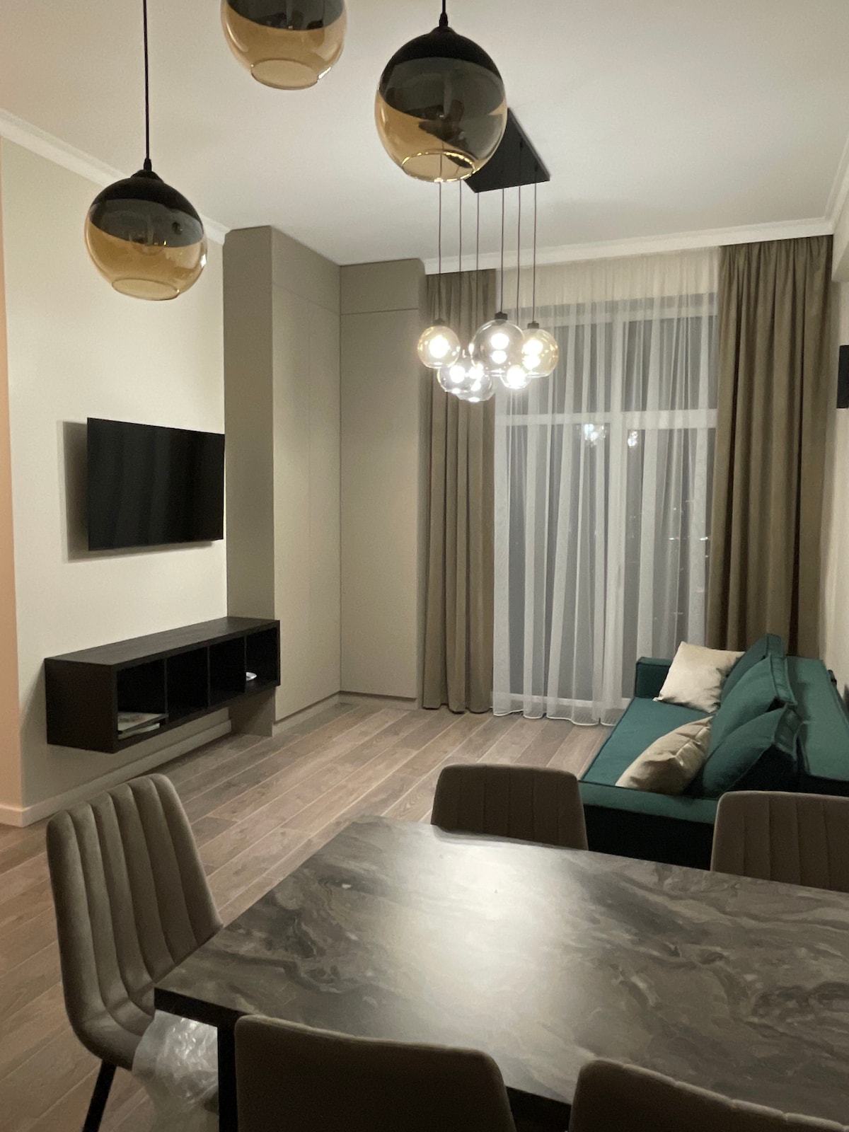 Un apartamento espacioso y muy elegante ideal para aquellos que quieran disfrutar de la tranquilidad de la ciudad lejos del ruido y el bullicio, pero ubicado al mismo tiempo en una zona que tiene todo lo necesario para una estancia cómoda: supermercados, restaurantes, tiendas, entretenimiento y otros. El apartamento es completamente nuevo, equipado con todo lo necesario para una estancia cómoda. Su diseño fue elaborado junto con un diseñador, lo que lo hace especial y hogareño.