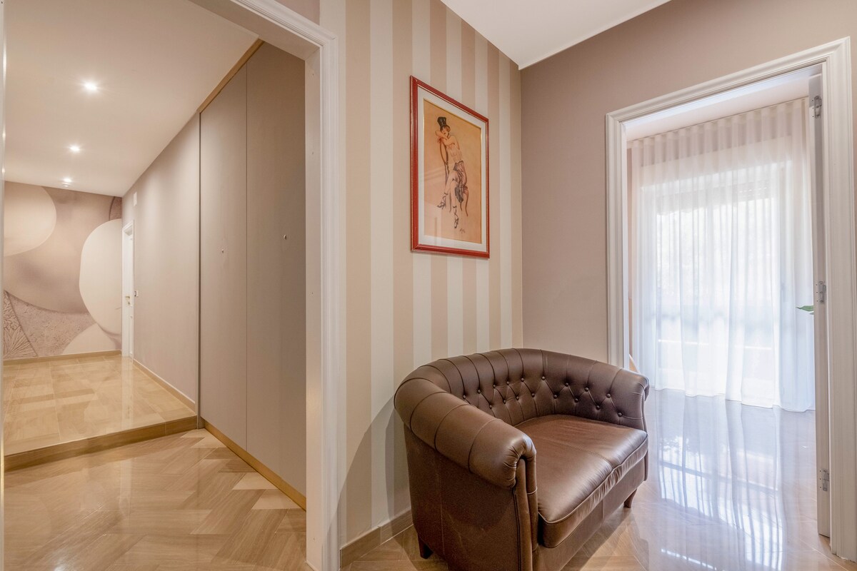 Gatsby - Jazz Age Dream en Bari ofrece una mezcla de encanto histórico y comodidad moderna, prometiendo una experiencia inolvidable. Perfecta para dos personas, la habitación está equipada con una lujosa cama, aire acondicionado privado y una gran ducha de cromoterapia, envuelta en lujo. Un acogedor balcón privado ofrece un espacio tranquilo para disfrutar del ambiente de Bari. La ubicación privilegiada de la propiedad, junto a la estación de tren, facilita la exploración de la ciudad. Gatsby es más que una habitación: es tu lujosa puerta de entrada a Bari.