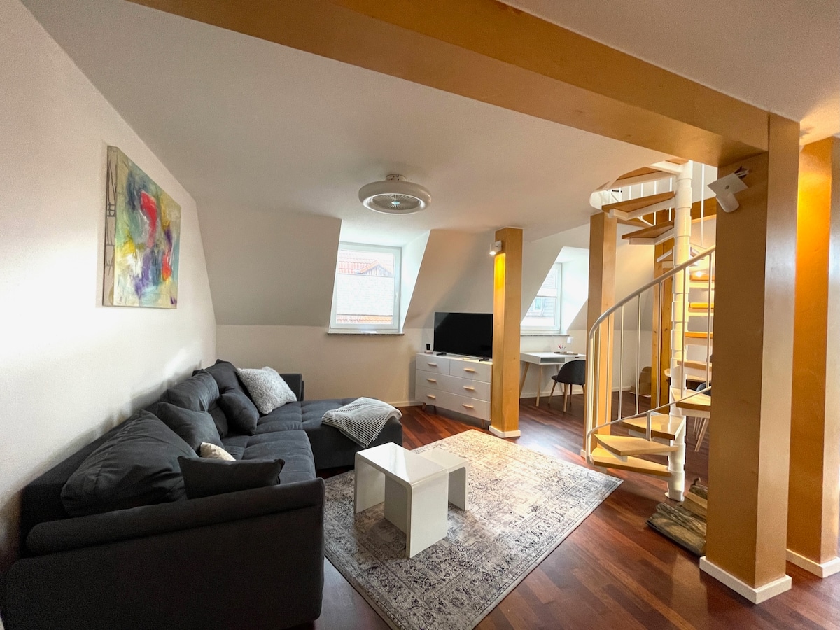 El alojamiento se encuentra en el corazón de Erfurt. Situado justo detrás del ayuntamiento junto al agua. Es un alojamiento muy tranquilo pero muy céntrico, decorado con alta calidad y reformado. El tranvía en el mercado de pescado está a solo 200 m. Todo lo que el corazón desea se encuentra en las inmediaciones. ¡El equipamiento es de alta calidad! Una hermosa terraza completa el conjunto. El centro histórico y peatonal no ofrece aparcamiento o es de pago.