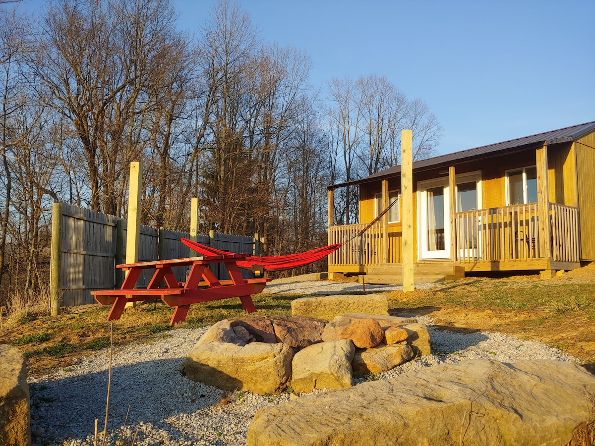 Welcome to the quieter side of hocking hills where you'll escape the hustle in exchange for a cabin in the woods - privacy, seclusion, and beautiful views to enjoy at sunrise, sunset, and everything in between. Designed intentionally to provide guests with a relaxing, calming experience, you will leave your getaway feeling refreshed and renewed. Your hardest decision will be whether to warm yourself by the cozy fireplace or to relax in the bubbling hot tub!