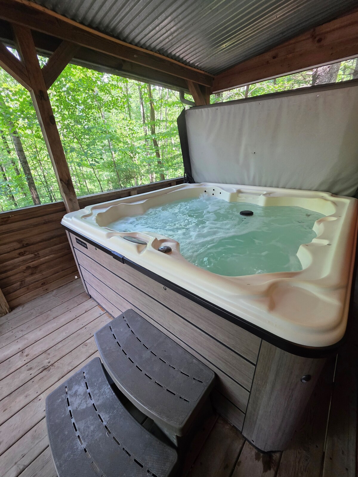 ¡Te damos la bienvenida a Tiny Oasis! Aislado en 5 acres con un hermoso arroyo que atraviesa. Tome una caminata por el bosque en el sendero natural o hacer un fuego y escuchar el arroyo balbuceante, las posibilidades para disfrutar de la naturaleza son infinitas! ¡El nuevo jacuzzi acaba de agregar, sumérgete el día después del senderismo! ¡Dirígete a la sala de estar con una estufa a leña para mantenerte cómodo después de estar fuera todo el día! ¡Una cocina completa con todo lo que necesitas durante tu estancia! ¡Te encantará tu estadía en Tiny Oasis!