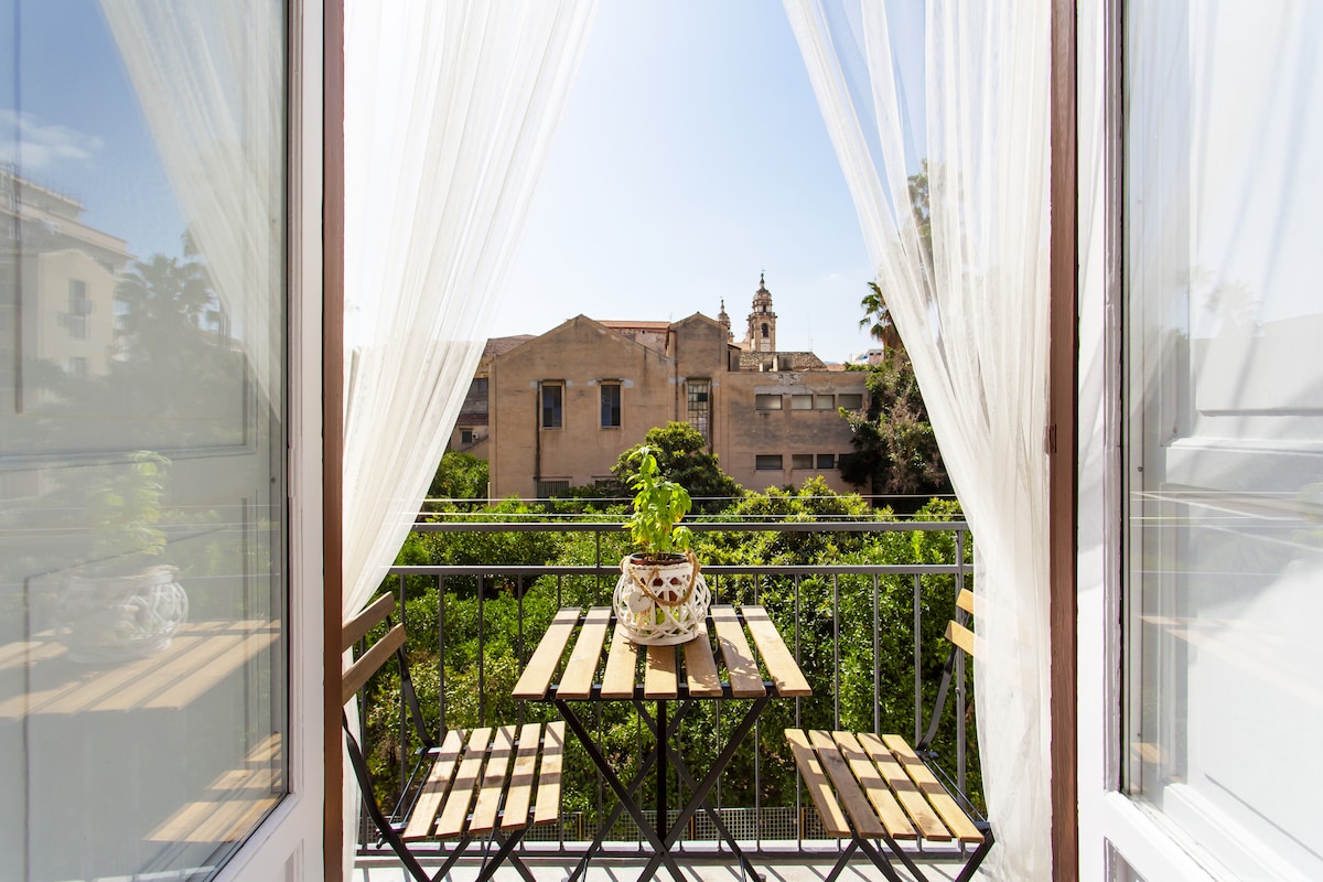 El apartamento está literalmente en el centro de la ciudad, ubicado en una calle encantadora con muchos restaurantes y cafés en el corazón histórico de Palermo, a la vuelta de la esquina del Teatro Massimo. Aunque está bien en medio de todos los restaurantes y la vida nocturna, realmente no se puede escuchar ningún ruido una vez dentro del apartamento. El lugar es amplio, elegante con cocina totalmente equipada, calefacción, aire acondicionado y una vista increíble de la iglesia de San Ignazio desde la terraza. El apartamento está en el piso 4 en un antiguo edificio sin ascensor.