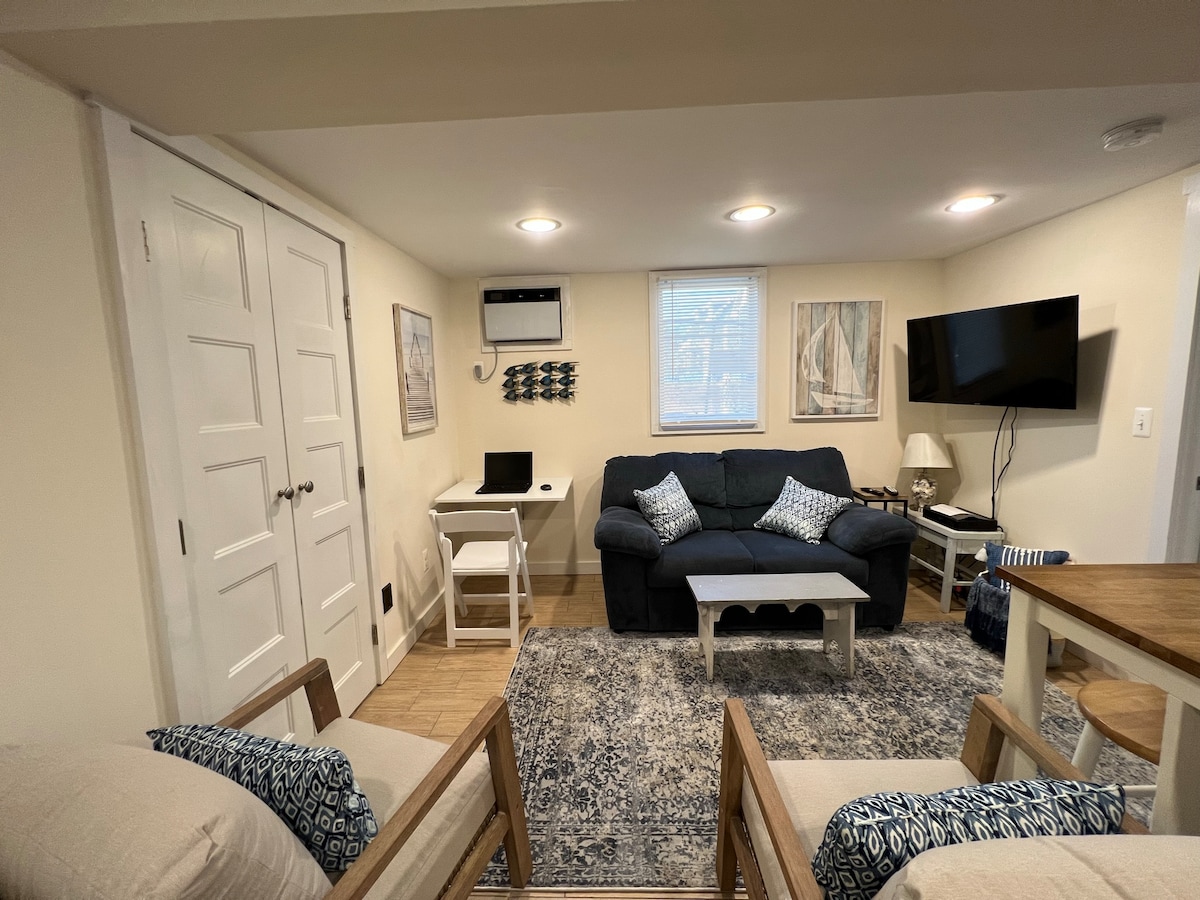 Escapada tranquila a unos pasos de la prístina playa de Manasquan. Baño completo + ducha exterior de cedro. Televisión, Internet, calefacción por suelo radiante y aire acondicionado. Cocina totalmente equipada con cafetera, microondas, platos, ollas y sartenes. Wifi, TV por cable. Pequeño espacio de trabajo emergente con silla en la sala de estar. Planta baja de casa de playa para dos familias. LOS HUÉSPEDES TRAEN SUS PROPIAS MANTA, SÁBANAS Y TOALLAS a menos que se haga otro arreglo.