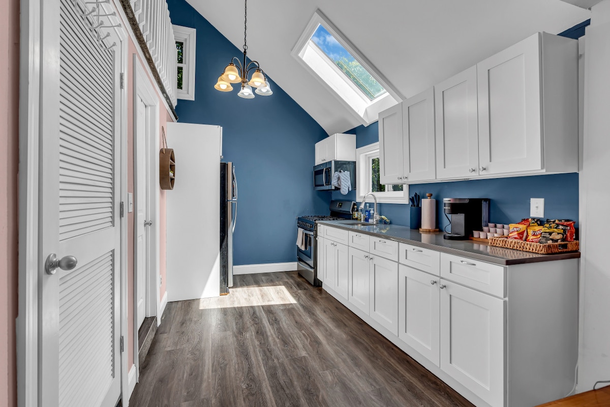 Pintoresca casa victoriana completamente renovada con un acogedor porche delantero, ubicada a 3 manzanas y media de la playa, cerca del Gran Auditorio y a pocas manzanas del centro de la ciudad. La casa está a menos de 2 manzanas a pie del puente peatonal de Asbury Park. Se proporcionan todos los suministros para el hogar, incluidos cubiertos y vajilla. Internet de 1 Giga. Televisores de última generación en todas las habitaciones. Dormitorio con cama tamaño queen y baño completo en el primer piso. Dormitorio con cama tamaño king ajustable, dormitorio con cama tamaño queen, dormitorio individual y baño completo en el segundo piso con oficina. STR# NSTR23-0022