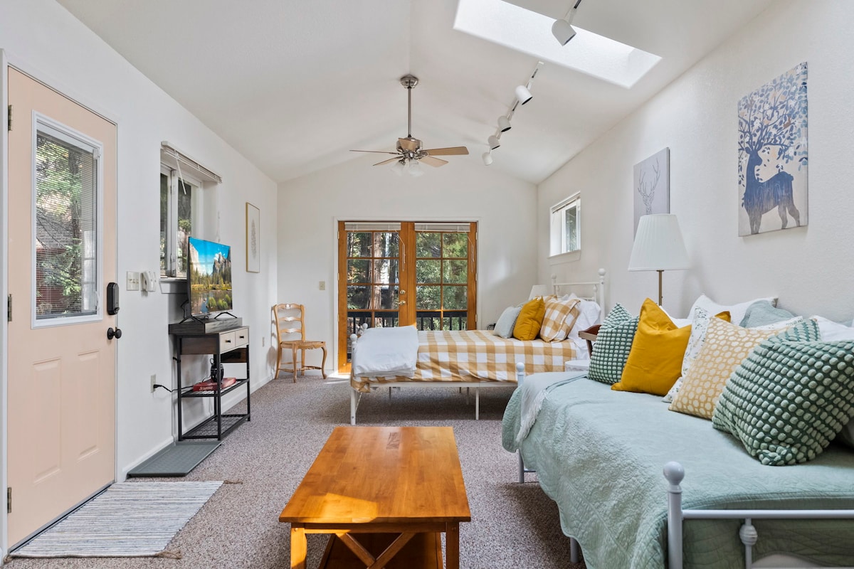 Super clean 1-bedroom guesthouse located in peaceful Phoenix Lake Estates—10 minutes from historic downtown Sonora. 80 miles to Yosemite, 21 miles to Pinecrest Lake, 29 miles to Dodge Ridge Ski Resort, and close to two casinos. Inside, you’ll find a spacious bedroom, bathroom, a fully equipped kitchen, a cozy living room with a pullout sofa bed, and a workspace. Many apologies, but we do now allow animals due to allergies.