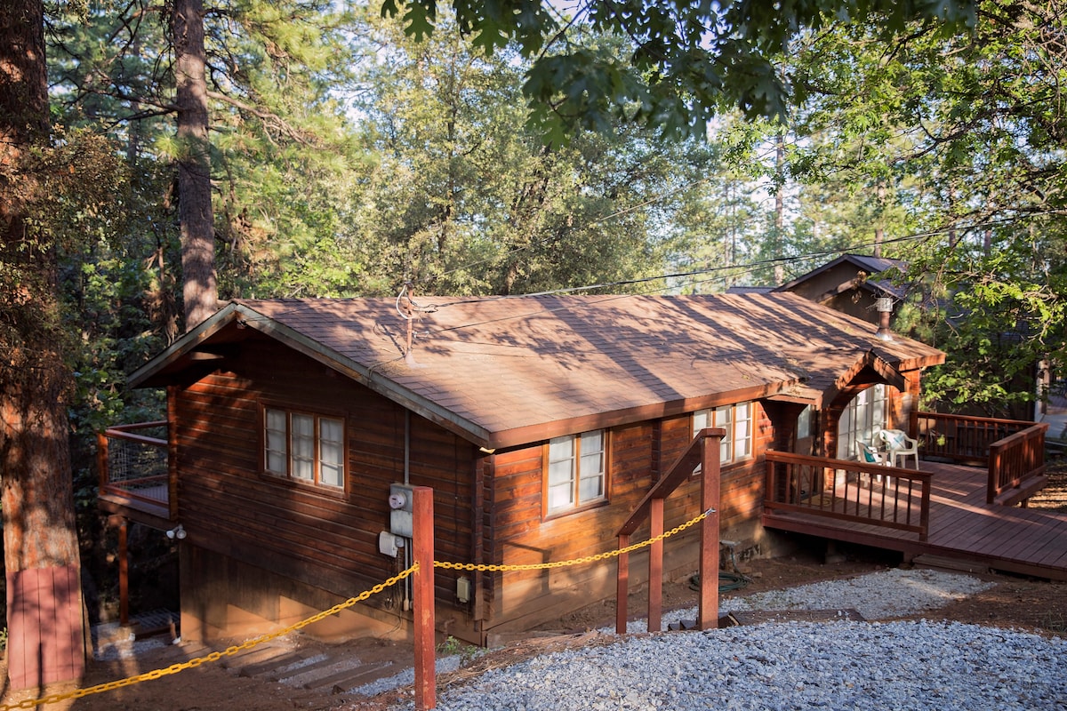 Our Cabin is a perfect mountain get away. Whether you're visiting nearby Twain Harte Lake, Pinecrest, Yosemite or just wanting to relax & enjoy sitting on the back deck with a glass of wine; You'll find our home a very relaxing and quiet stay with a short 4 min walk to town! In the winters enjoy a wood burning fire place and watch the snow fall in the big picturesque front windows & tall open beamed ceiling. Firewood not included. Located in a quiet neighborhood to decompress from the hustle