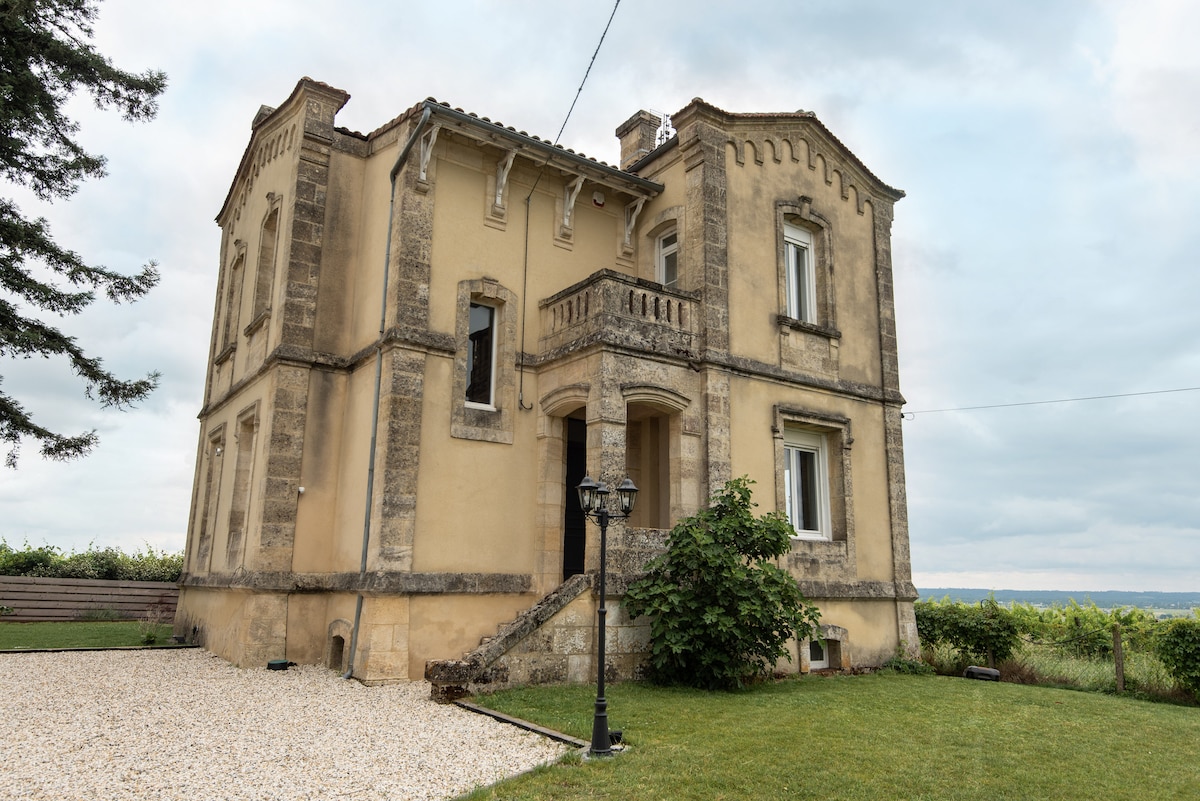 Venez séjourner en famille ou entre amis dans ce château séduisant par son charme et sa situation au sein d'une propriété viticole familiale, avec une belle vue sur une vallée boisée et sur le vignoble de l'Entre Deux Mers . Entrez pour une réelle parenthèse au calme. Une visite de la propriété et ses carrières souterraines vous sera offerte ainsi qu'une dégustation complète des vins! Vous pourrez visiter la région facilement : nous sommes à 30 minutes de Bordeaux et 1 heure de la côte.
