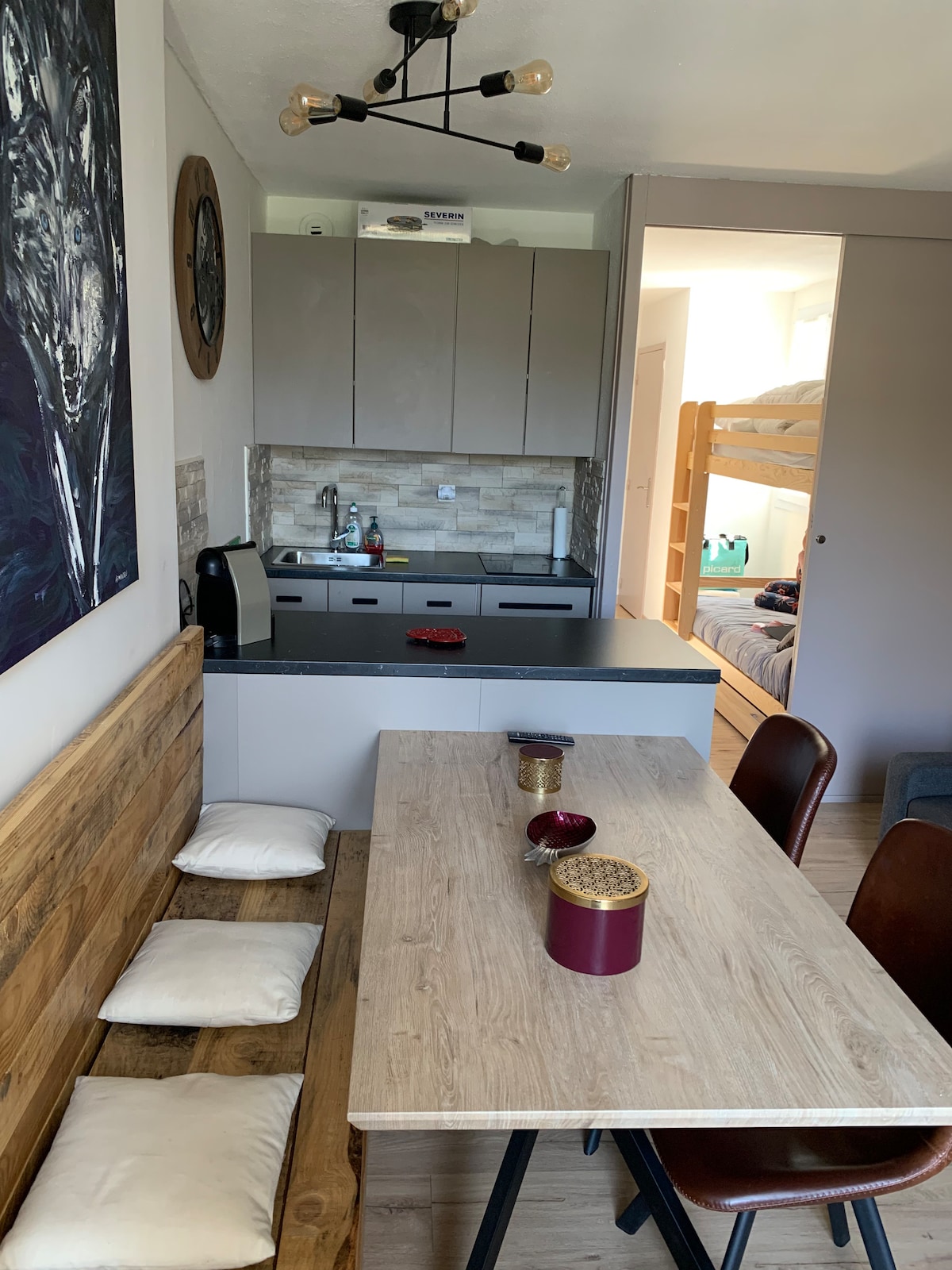 Disfruta de un alojamiento elegante y céntrico. Completamente renovado por nosotros . Seleccionamos viajeros respetuosos y cuidadosos. Puede alojar a 4 personas como máximo para una superficie de 18 m°. NO FUMADORES. NO SE ADMITEN ANIMALES No se proporciona ropa de cama (posibilidad de ropa de cama desechable-PAGO) Llegada a partir de las 15: 00 / salida antes de las 10:00. Llegada y salida independiente. A 150 metros de las salidas de pistas, y a menos de 10 minutos a pie del centro comercial. La finca nórdica se encuentra a 15 min. a pie.