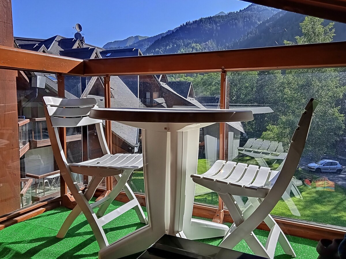 Dúplex de 50 m2 con balcón en el corazón del pueblo para 4 a 5 personas situado en un complejo residencial tranquilo en el segundo piso con ascensor. Estacionamiento privado cubierto. El acceso a la zona de esquí está permitido por autobuses gratuitos y regulares a los telecabinas de Lay y Pontet. La parada del servicio de traslado se encuentra a 150 metros del apartamento en la plaza del pueblo (parada Chef-lieu).